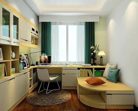 安靜是書房必備的,安靜的環境能夠快速靜下心來,進入工作的狀態, 才能辦事高效。在裝修時,可以選擇一些隔音和效果比較好的裝飾材料,在書房的天花板上,可以選擇用吸音的石膏來進行吊頂,而書房的墻壁可以用軟包裝裝飾,比如墻紙;地面同樣可以使用吸引效果好的地毯;書房的窗簾需要選擇質地比較厚的材料;這樣可以隔絕外面的噪音,從而進入一個相對安靜的環境 。