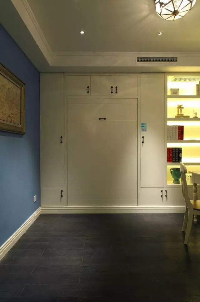 這樣的壁柜比傳統的小格子博古架更加吸引人,一種大氣、高雅的感覺在看到這里時油然而生。