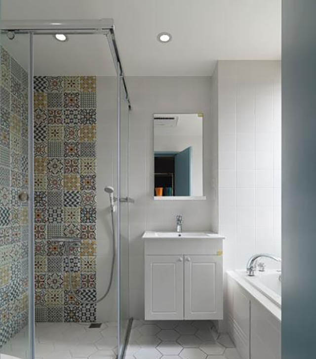 建議選擇尺寸較小的衛浴產品,多增添收納空間,做好干濕分區。另外選用淺色的瓷磚提高空間明度可以使衛生間看上去視覺上顯大一點。暗衛的話可以安裝大吸力的排風系統。