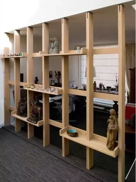 ▲木條屏風,和地板相得益彰