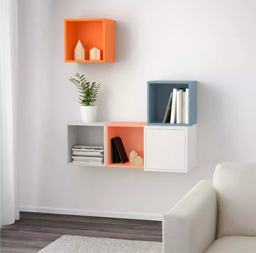 ▲這類裝飾適合沙發背景墻與沙發有一定距離的客廳,將隔板噴繪出自己想要的顏色,并加以搭配組裝。上面擺放的物件也是有講究的,屋主人的興趣、品位在這里都能盡數展出。