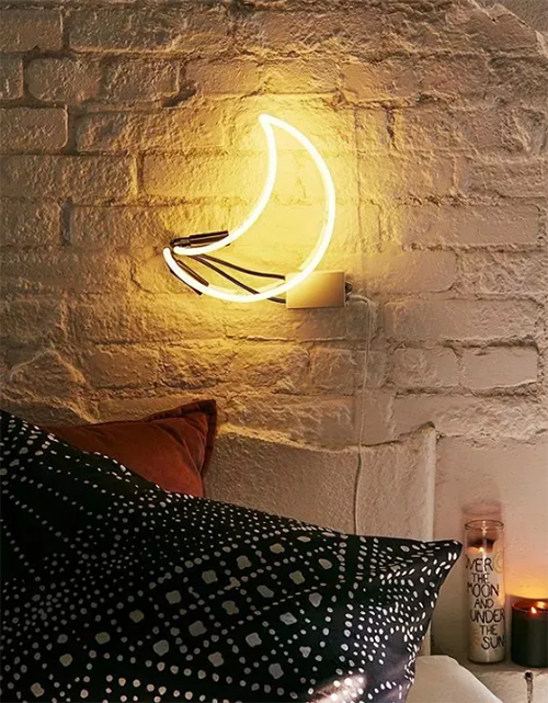 如果你對霓虹燈的印象還停留在酒吧和商業街,那端端可真是要氣到翻白眼了。造型多變的霓虹燈不僅能做臥室空間的氛圍照明,還能替代裝飾畫做床頭區的主要裝飾。