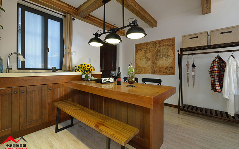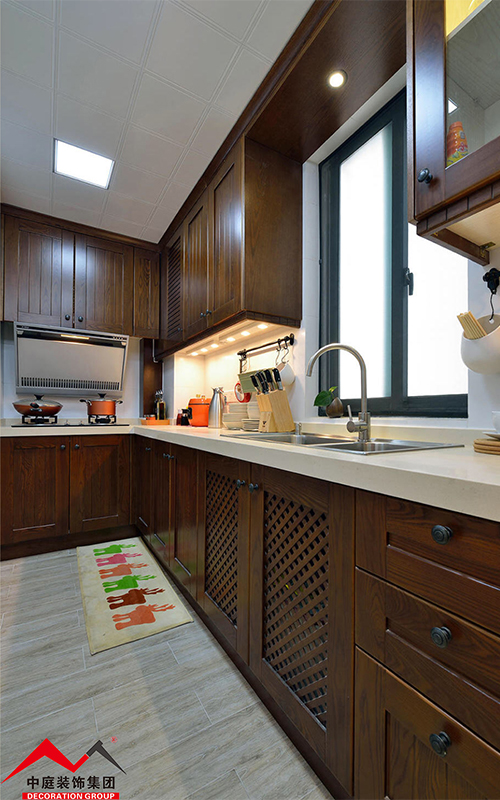 廚房繼續延續整個空間的輕美式風格,木制門板造型精致美觀典雅,讓人賞心悅目!在這樣美的空間為一家人準備餐點,難道不是一種享受嗎?