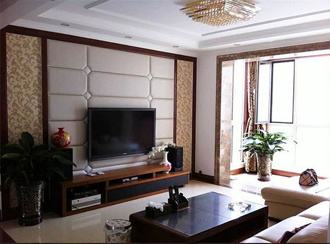 除了上面的材料,背景墻也可以選布藝和皮革材料。柔軟的布料總是能給人十分溫馨的感覺,而且布料能夠吸收雜音讓房間更安靜。而皮革吸音效果很好,經(jīng)久耐用。此外如果實(shí)在挑不到滿意的電視背景墻材料,可擺放一些自己喜愛的裝飾品來(lái)裝飾,而且隨時(shí)可以替換,簡(jiǎn)單卻不失品味。