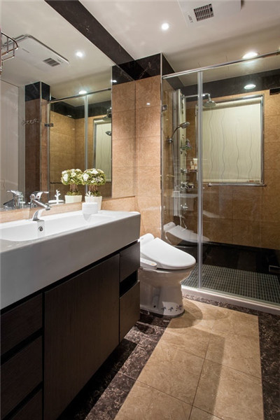 一般來說,浴室里頭50%的濕氣來自于地面,透過入墻手法的浴柜設計,能夠避免底部直接吸潮的問題,同時利用到最大限度的空間坪效。