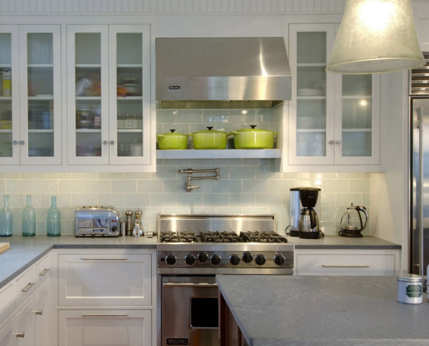 2、眾所周知,玻璃具有很強的透亮性,并且顯現效果也極佳,不會讓人覺得壓抑,所以在小房型的裝扮中,必然少不了玻璃材質的運用,尤其是廚房吊柜中玻璃邊框的采用,非常具有現代感,另外在挑選櫥柜顏色時避免使用黑色、深棕色等較暗的色彩。