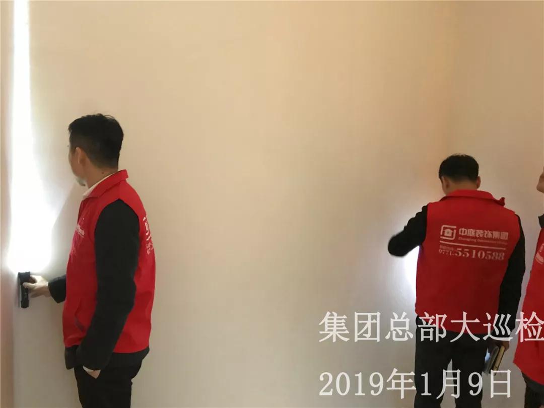 強(qiáng)光手電筒檢查膩?zhàn)邮┕な欠襁_(dá)到集團(tuán)要求施工標(biāo)準(zhǔn)
