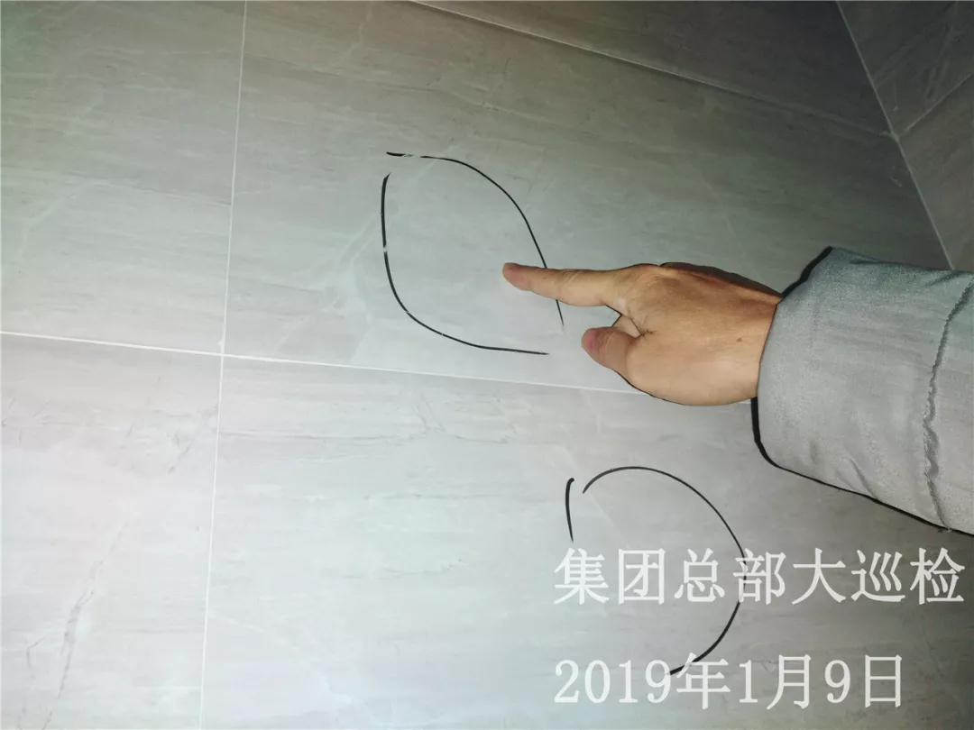 瓷磚空鼓,巡檢組現(xiàn)場(chǎng)作出標(biāo)記,并責(zé)令項(xiàng)目經(jīng)理進(jìn)行整改,現(xiàn)場(chǎng)安排跟進(jìn)人員,讓整改落實(shí)到位。