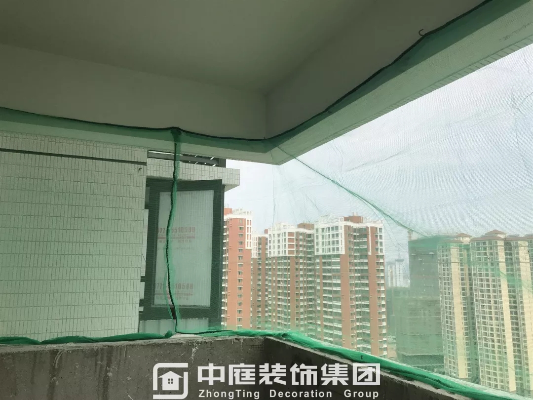 防護掛網懸掛到位,上期巡檢后集團決定將原來白色的防護掛網升級為綠色掛網,更加醒目的顏色為工人的施工安全保駕護航,同時更加細密的掛網也避免了在陽臺切割瓷磚時造成大量的灰塵飄逸出去,對小區環境造成影響。愛護施工環境,從細節做起。