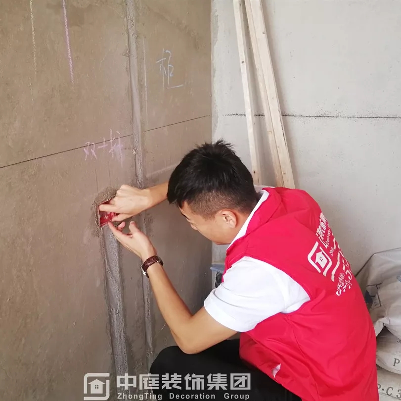檢查瓷磚鋪貼的平整度是否達到集團施工標準