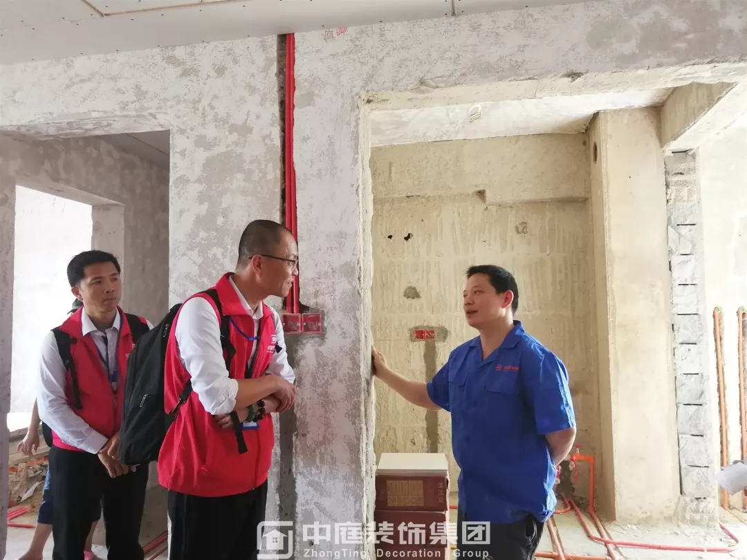 丁總在施工現場與工人交流,了解一線工人在施工過程中有無遇到困難,聽取工人對工地管理的建議,并了解工人對公司的滿意度。