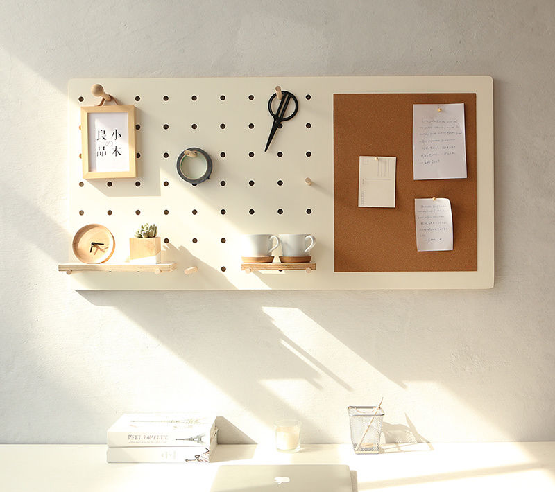 豐富的diy組件,掛照片、貼便利貼,掛小剪刀、膠帶,多方便呀!還可以在隔板上放盆栽,水杯,這配套太完美了!