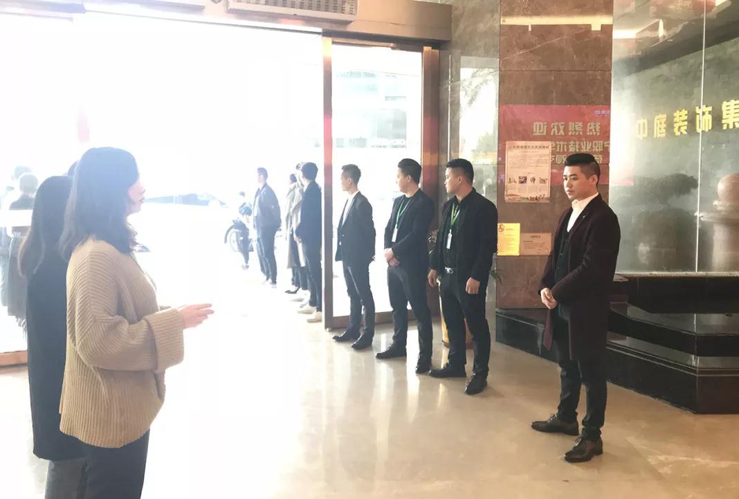 中庭裝飾集團(tuán)家人在集團(tuán)大門列隊迎接,對南職師生的到來表示熱烈的歡迎。