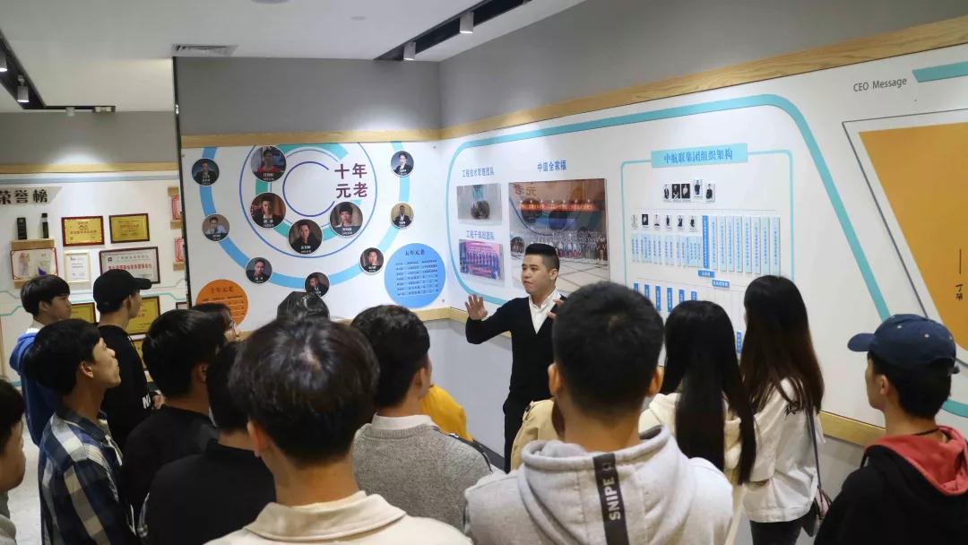 張總帶領(lǐng)學(xué)生參觀中庭裝飾集團(tuán)文化長廊,給同學(xué)們介紹了關(guān)于中庭裝飾集團(tuán)組織架構(gòu),企業(yè)愿景、使命、價值觀以及人文關(guān)懷,愛心公益等方面的企業(yè)文化。