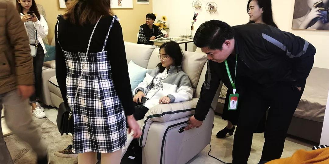 在廚房展示區(qū),設(shè)計部經(jīng)理韋昌豪和學(xué)生分享:“如果同學(xué)們今后決心要成為一名設(shè)計師,現(xiàn)在開始就要關(guān)注一些基礎(chǔ)的設(shè)計上的問題,對廚房的配置多做基礎(chǔ)的了解,平時也可以自己拿尺子量一些門、窗的尺寸。設(shè)計源于生活,設(shè)計師做出的設(shè)計也要根據(jù)現(xiàn)實(shí)生活來落地?!?