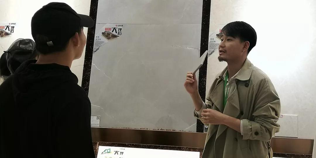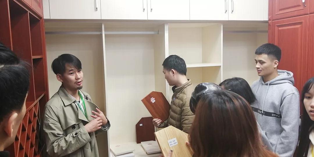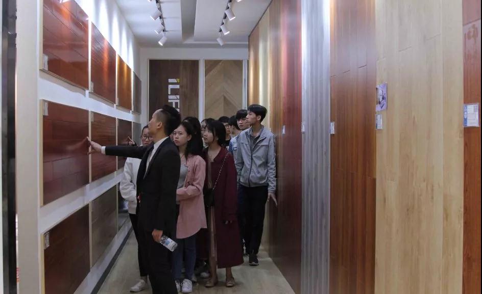 材料展示區(qū)由運(yùn)營部總經(jīng)理?xiàng)羁偤驮O(shè)計部經(jīng)理韋昌豪帶領(lǐng)學(xué)生參觀。