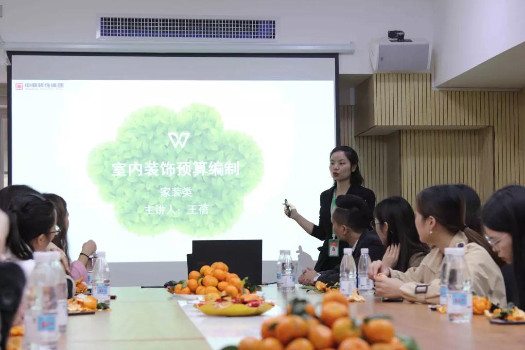 我們請到了預(yù)決算部經(jīng)理王蓓來給學(xué)生們講解室內(nèi)裝潢的預(yù)算組成部分。