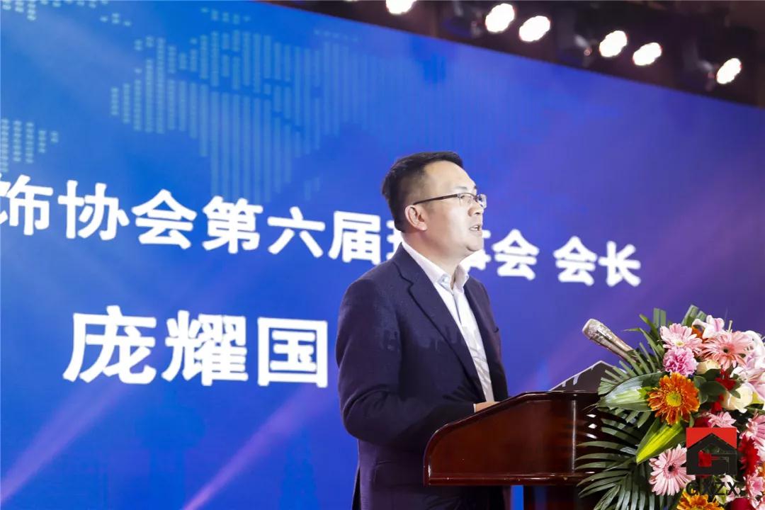 ▲廣西建筑裝飾協(xié)會(huì)會(huì)長(zhǎng)龐耀國(guó)作2018年協(xié)會(huì)工作報(bào)告