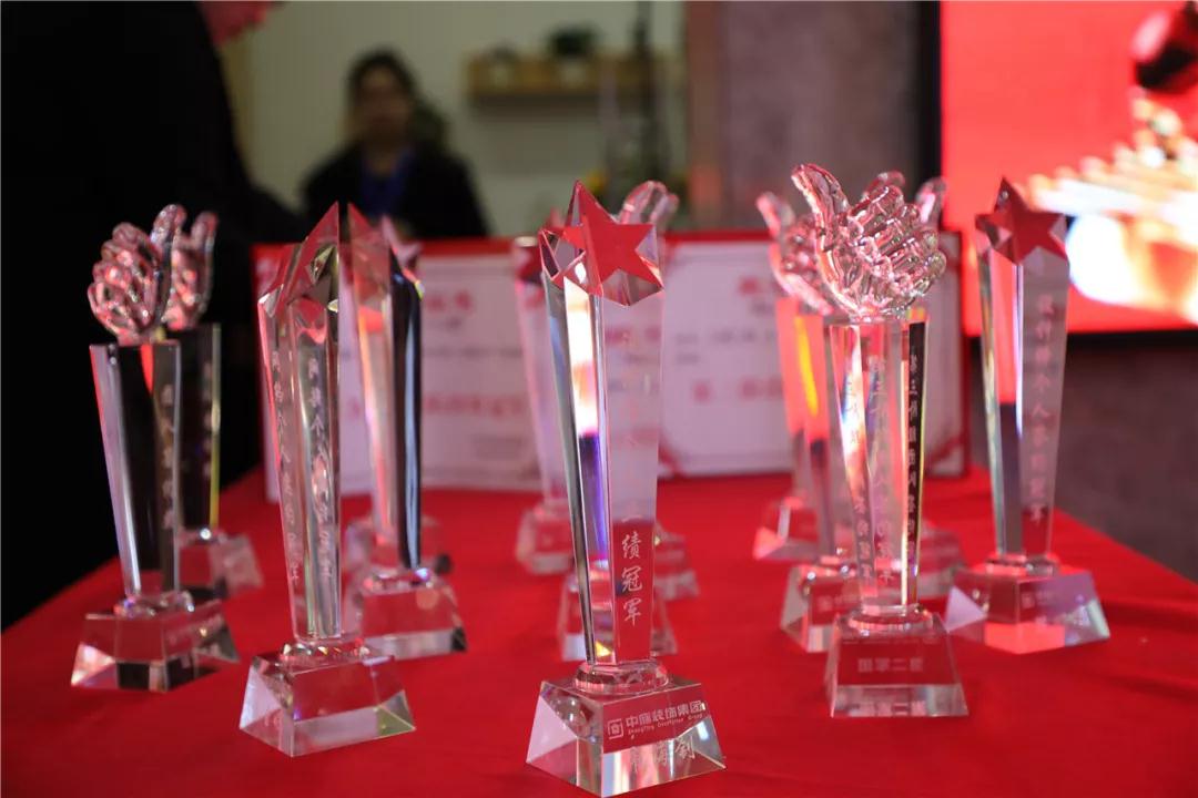 丁胡總裁為獲獎團隊頒發榮譽證書和獎杯