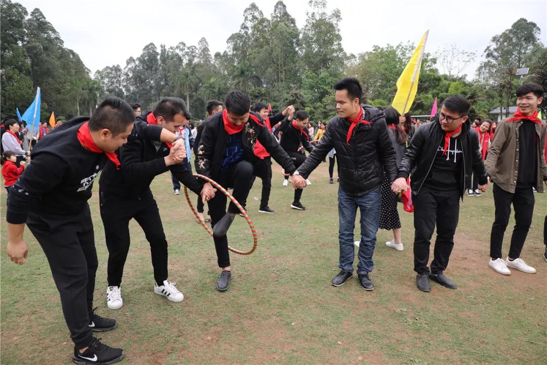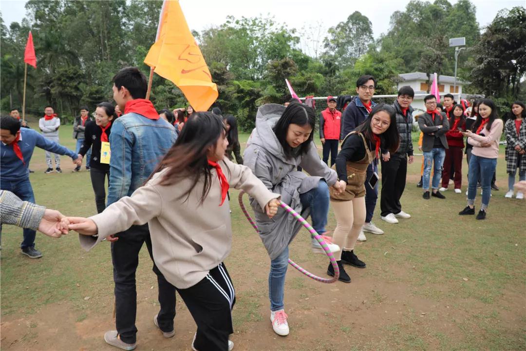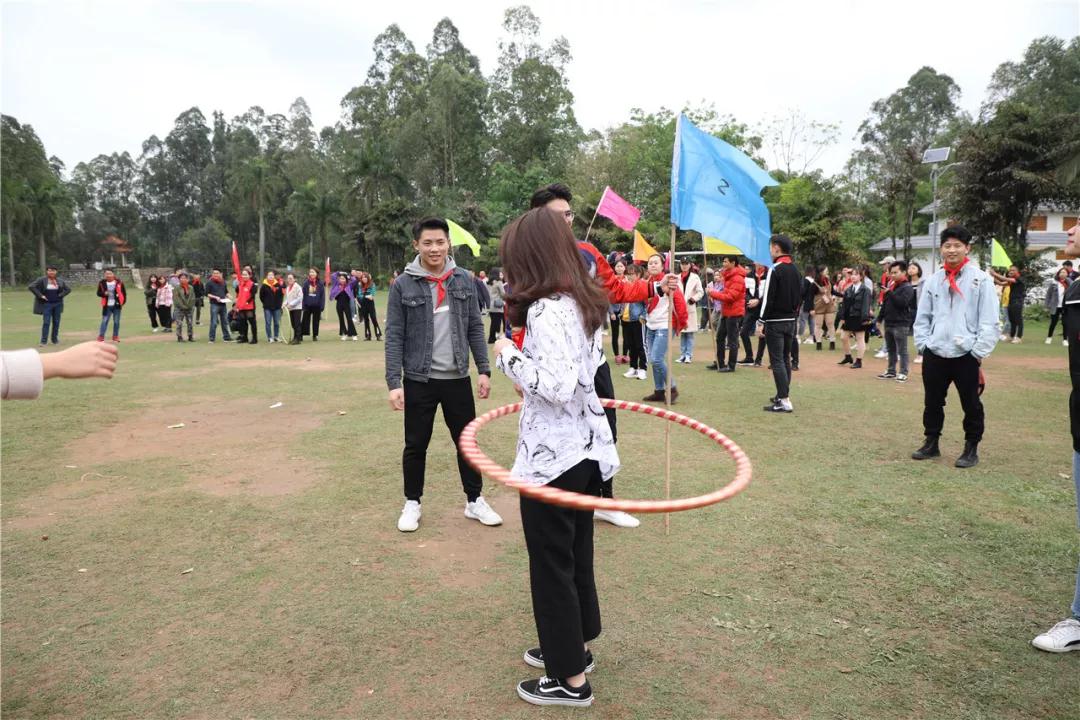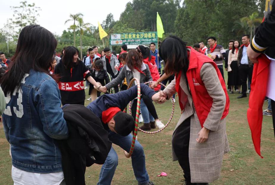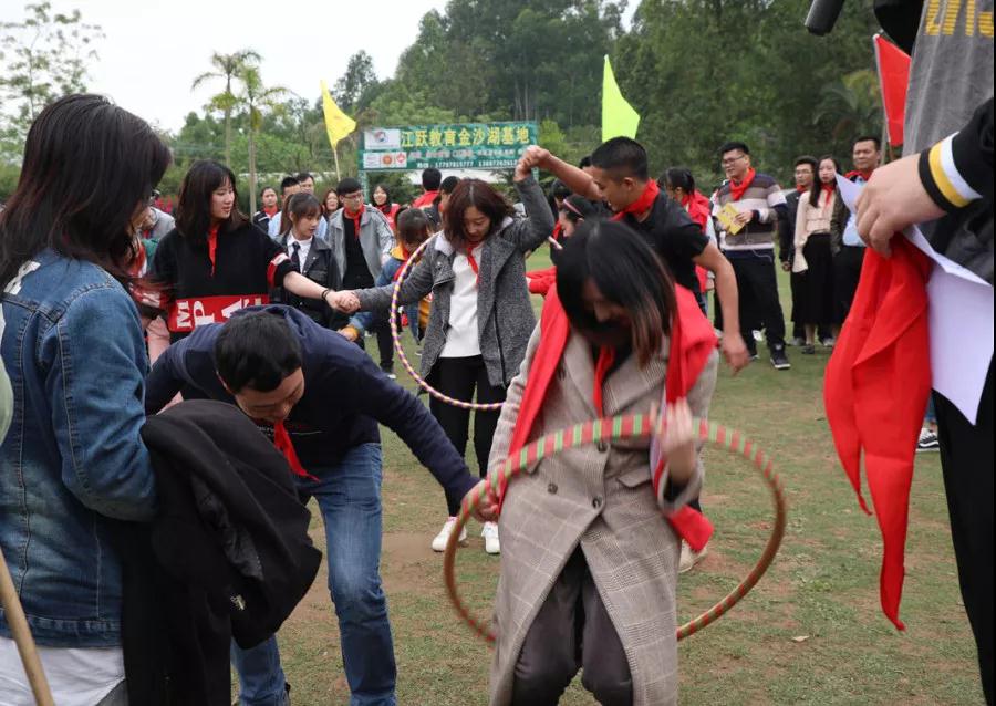 游戲規則:小組人員手牽手,從第一個人傳遞拉呼啦圈至最后一人,中途隊員不能放開手或者用手去接觸呼啦圈,否側重來,完成任務團隊。