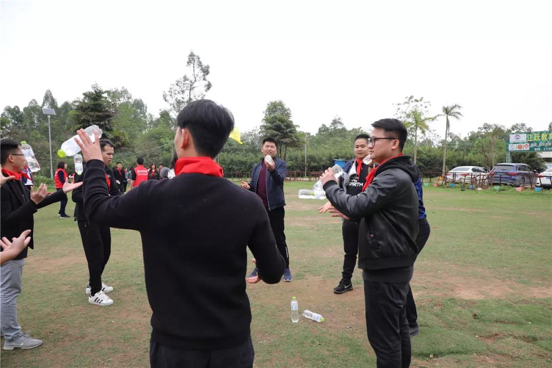 贏取勝利需要謀略,礦泉水瓶傳遞講究的是團隊間的協作能力,考驗大家默契度的時候到了