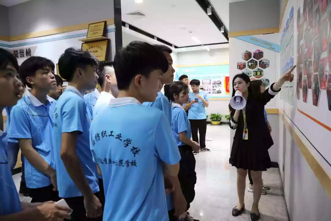 人資部經(jīng)理劉高才、主管黃丹丹帶領(lǐng)紡織工業(yè)學(xué)校學(xué)生參觀文化長廊,向?qū)W生們介紹公司企業(yè)文化理念、組織架構(gòu)、服務(wù)理念、企業(yè)榮譽(yù)、員工關(guān)懷等方面內(nèi)容,讓學(xué)生們對公司的企業(yè)文化有更深的了解。