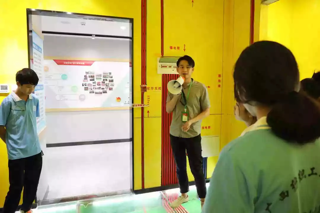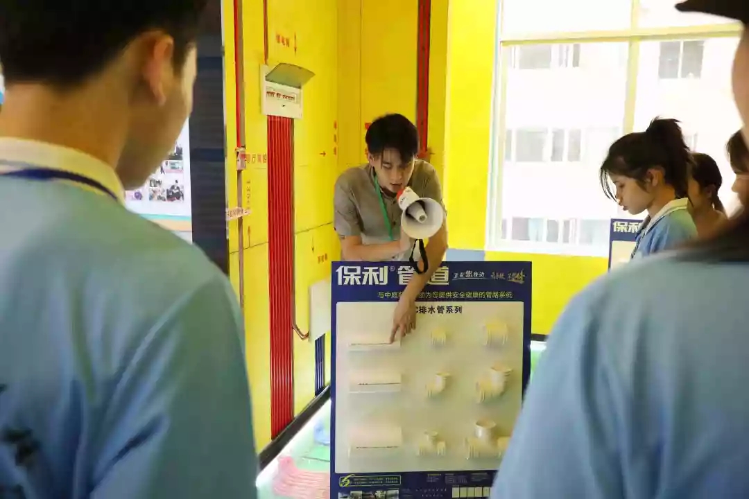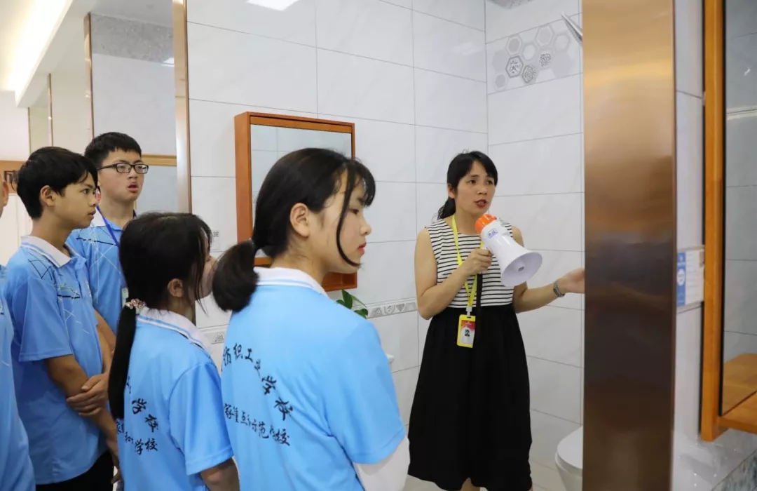 運(yùn)營部設(shè)計(jì)經(jīng)理韋昌豪帶領(lǐng)學(xué)生參觀軟裝體驗(yàn)館、工藝樣板間,講解裝修設(shè)計(jì)、裝修工藝、水電工程用料方面的知識(shí),并解答學(xué)生們的疑問。