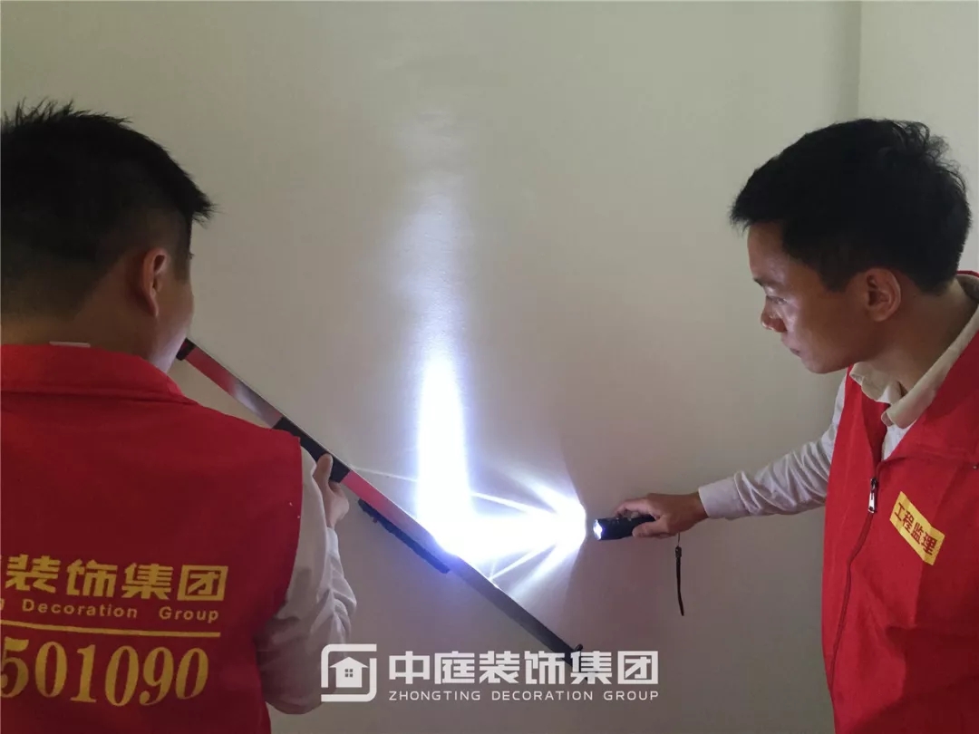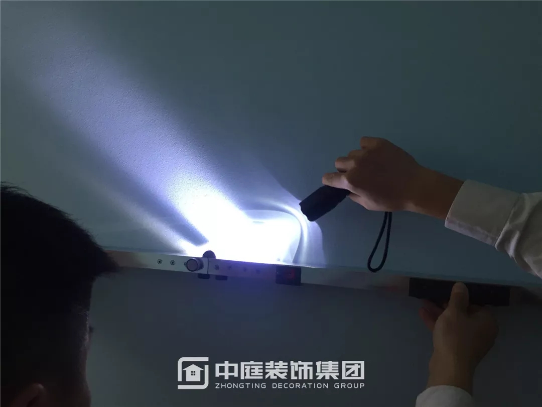 強光光線無法穿透靠尺并產生折射,墻面平整度達標。