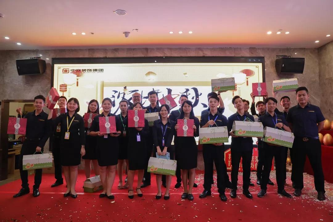 在這個團圓佳節來臨之際,中庭裝飾集團于9月9日這個長久的日子,向全體家人發放中秋禮盒,給家人們送上最誠摯的祝福。