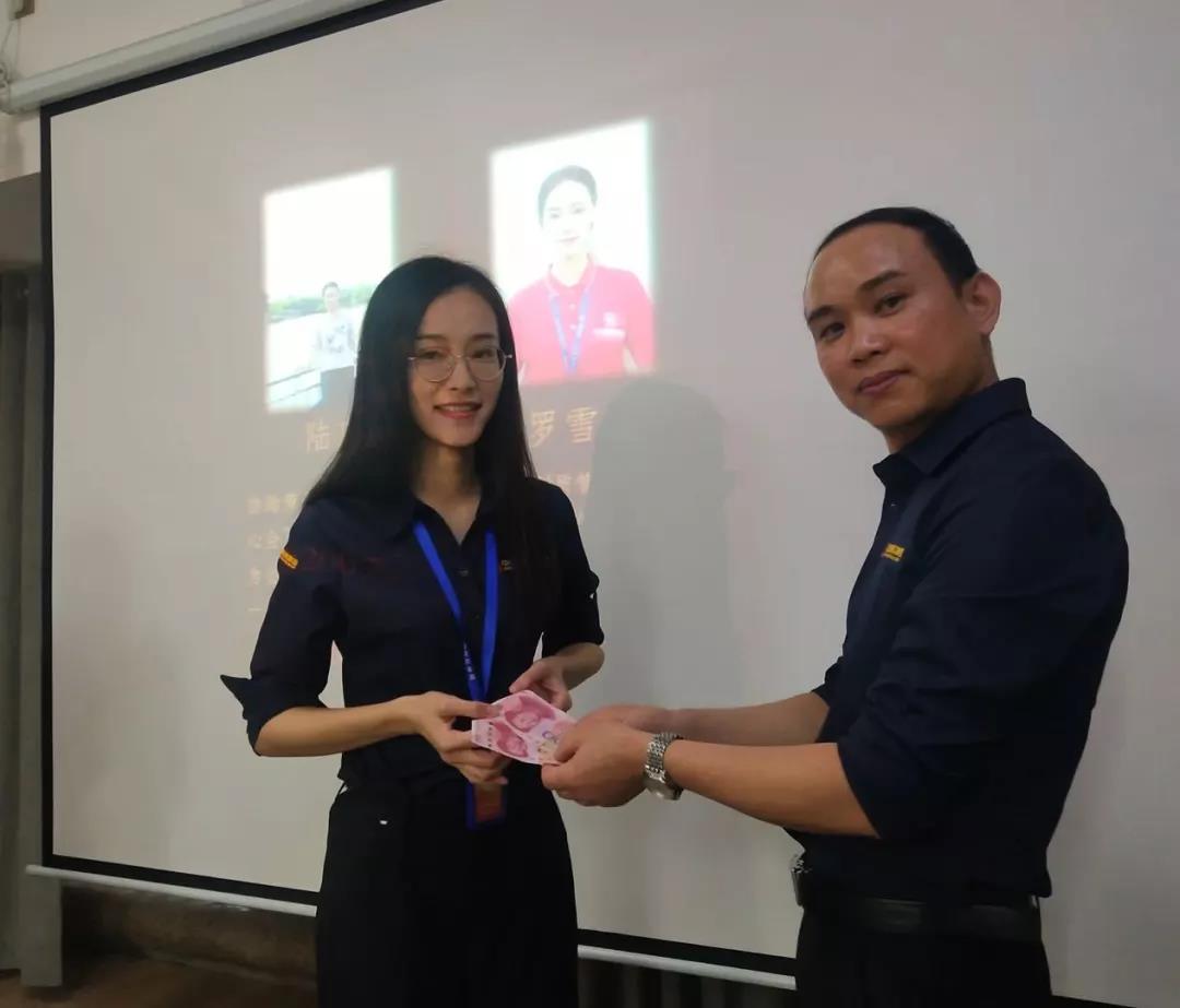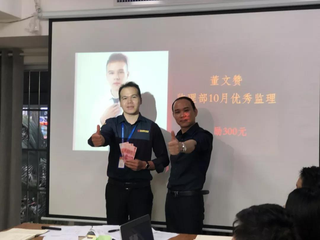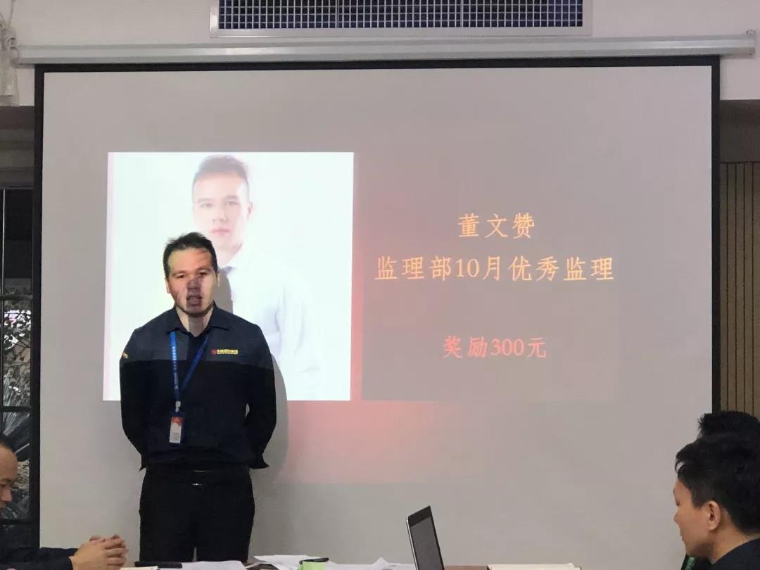 工程質量管理中心總經理吳文戰給10月表現優秀的家人頒發獎勵: