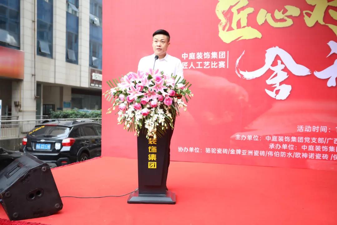 11月15日上午,由集團(tuán)黨支部主辦,質(zhì)管中心承辦,以“匠心對(duì)弈 舍我其誰(shuí)”為主題的中庭裝飾集團(tuán)2020年匠人工藝比賽在集團(tuán)總部盛大召開(kāi),出席本次活動(dòng)的領(lǐng)導(dǎo)和嘉賓有廣西建筑裝飾協(xié)會(huì)副秘書(shū)長(zhǎng)兼施工委主任譚謙,中庭裝飾集團(tuán)總裁丁胡、集團(tuán)副總裁金洪路、集團(tuán)副總裁張浩熙、集團(tuán)副總裁兼工程質(zhì)量管理中心總經(jīng)理吳文戰(zhàn)、集團(tuán)總裁助理黃志輝等,共同見(jiàn)證本次工藝比賽啟動(dòng)。