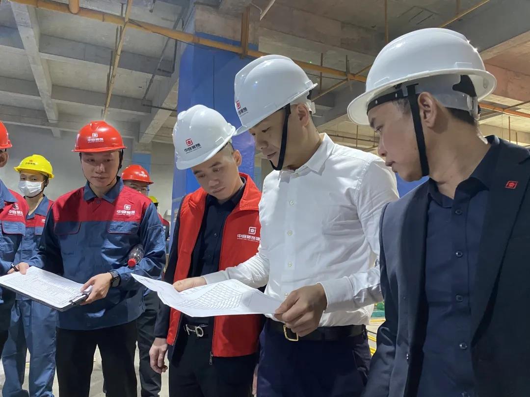 ▲丁總裁查看施工圖紙考題