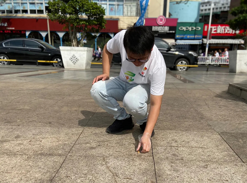 黨支部張書記撿拾煙頭