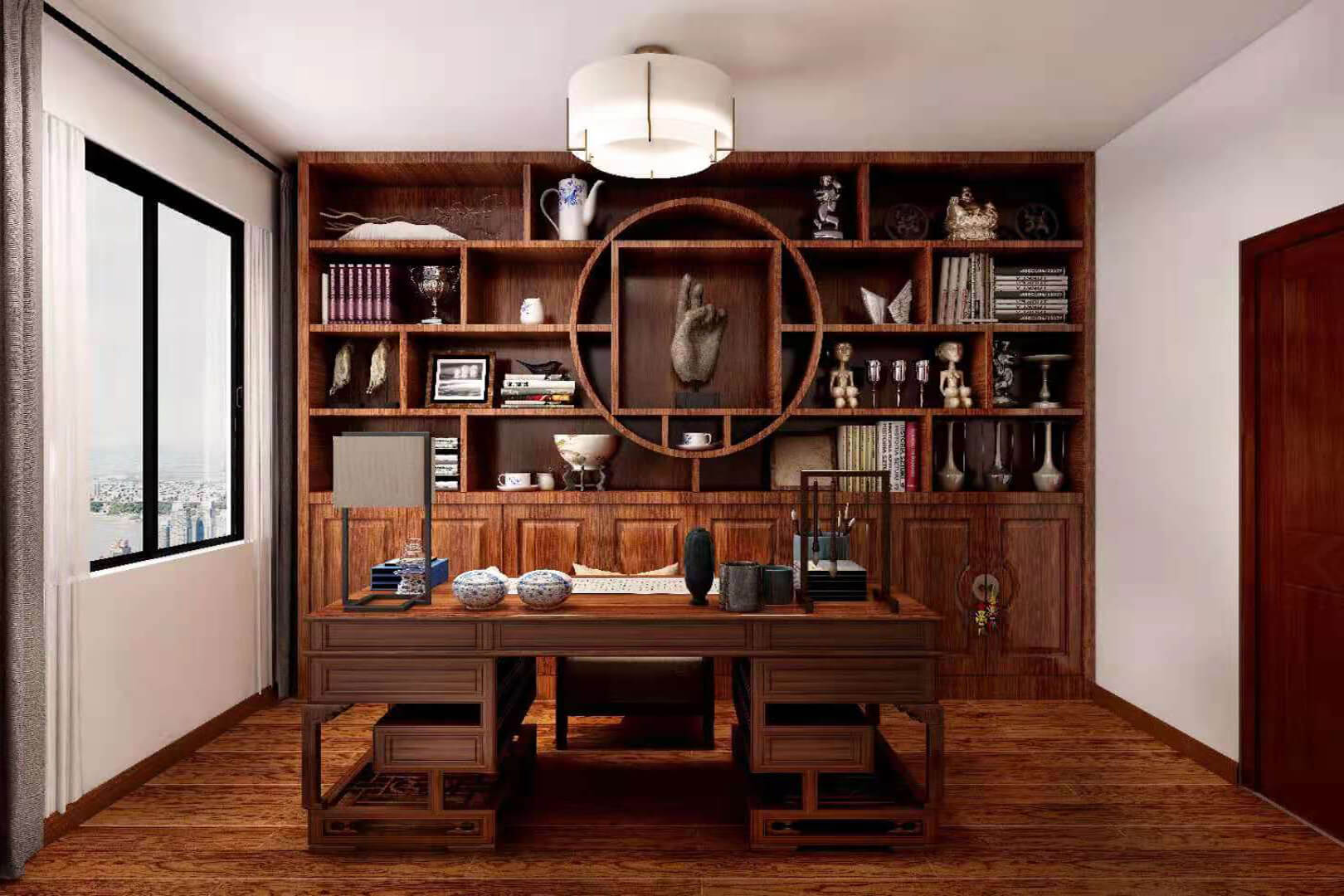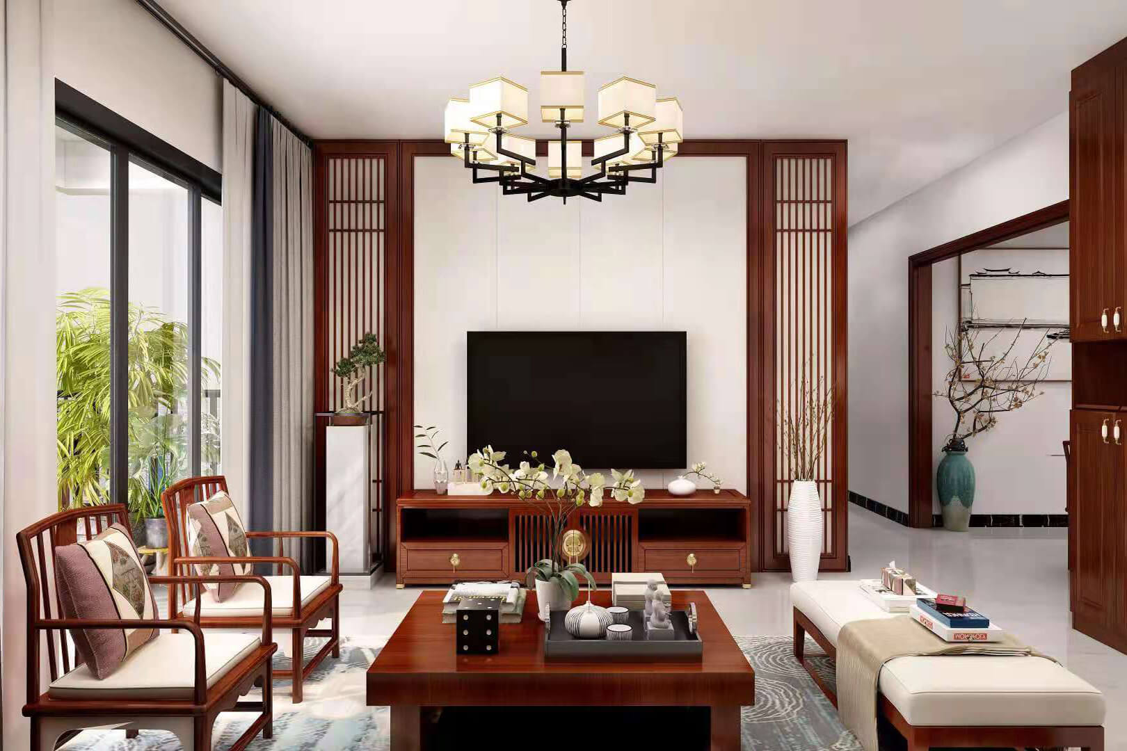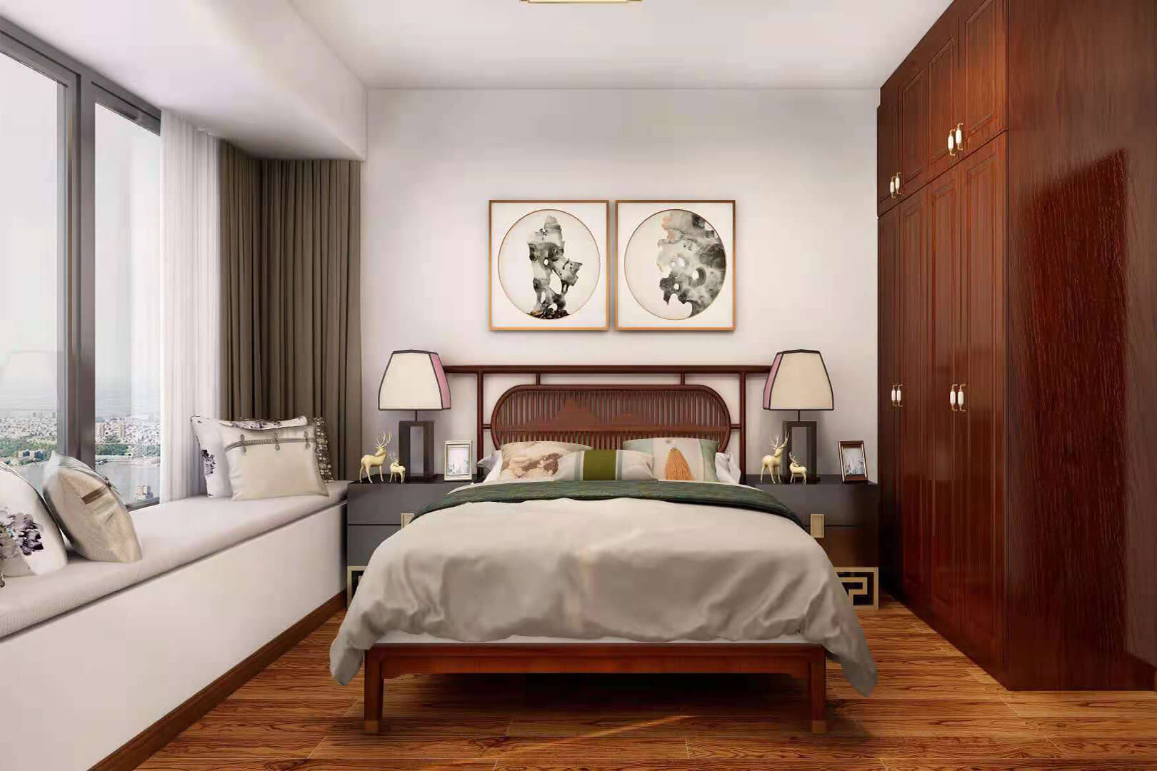 瀏覽量:549房子整體家具以紅木為主。客廳采用白色地磚和留墻面與家具搭配讓顏色看起來更為簡潔,不做裝飾的吊頂讓整體的空間看起來更寬大。房間采用紅木地板與房間家具色彩呼應(yīng),墻面留白用水墨畫裝飾讓房間裝飾更豐富,也讓色彩更多了層次感。