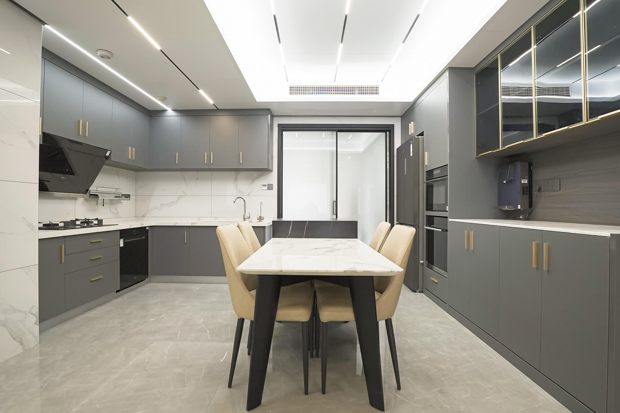 本案戶型為4房2廳2衛,總面積144㎡。業主的需求是想要這個房子盡量開闊,然后空間得到提升。設計師圍繞輕奢風,以無主燈設計為核心,通過吊頂造型和金屬線條裝飾,打造一個有現代美感的家居。