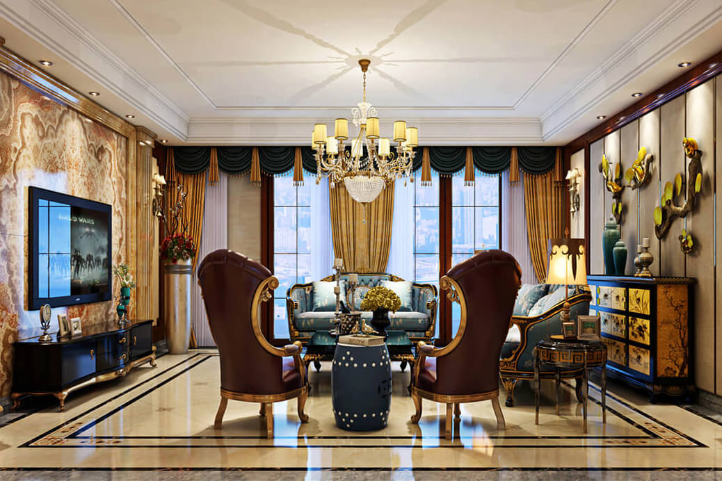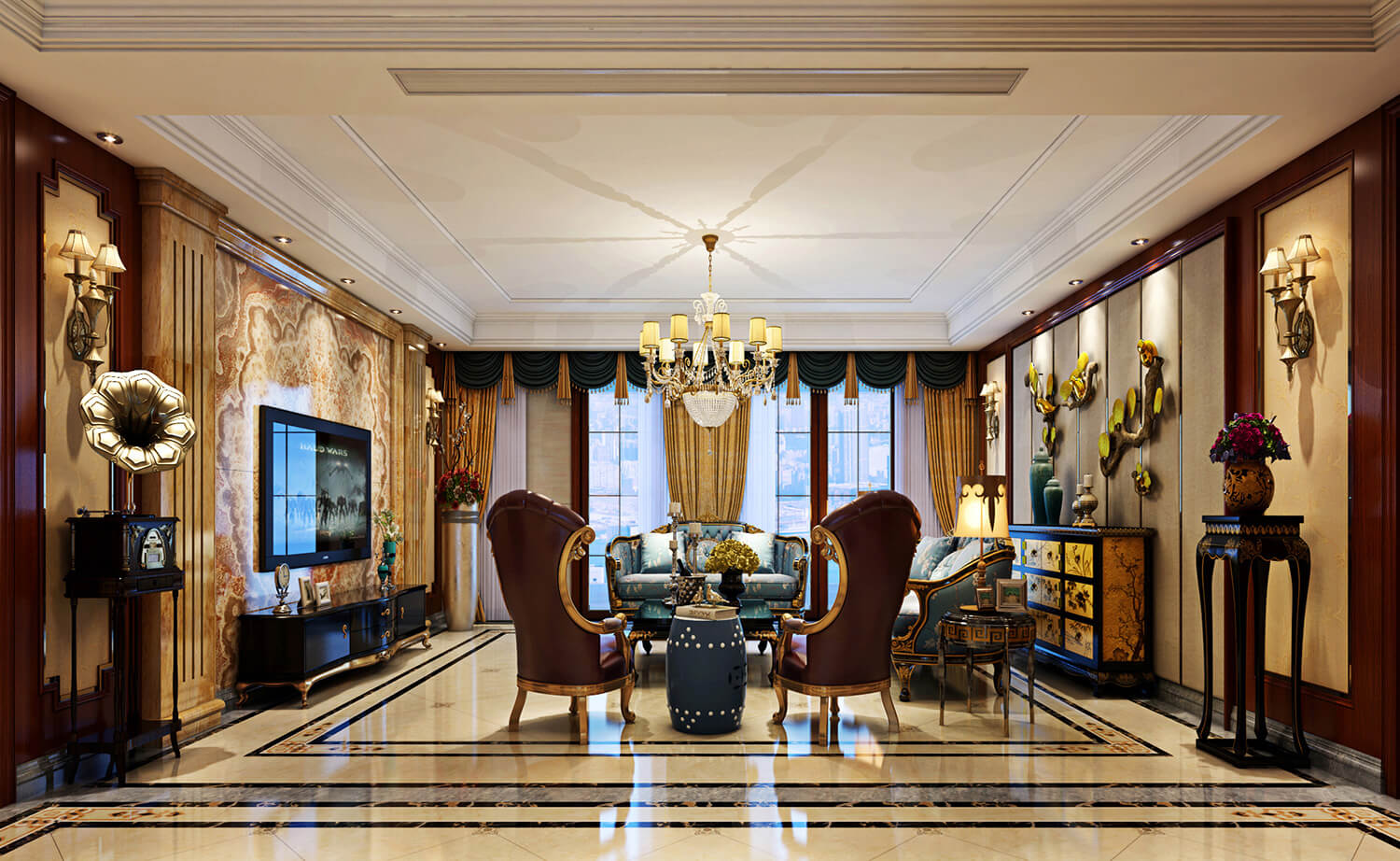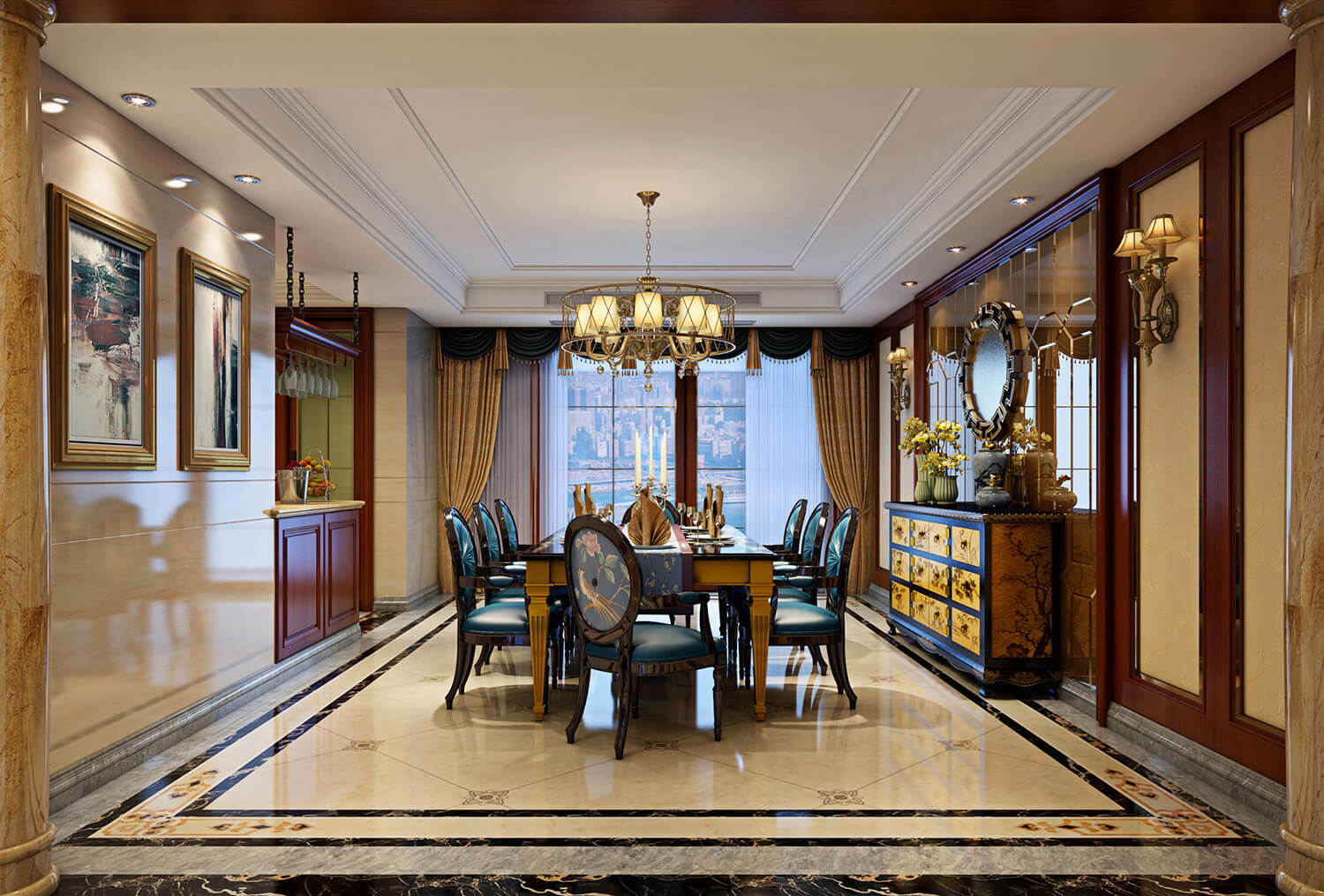 以恰到好處的分寸感,將美式自帶的文化情調,融入現代的人文氣質。美式經典的壁爐,在詩意悠然的空間中,增強視覺張力,強調井然的秩序感。