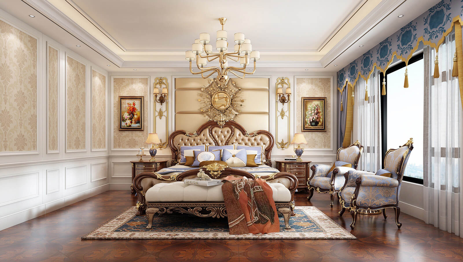 本案為126㎡的歐式風格案例。歐式風格倡導以高品質的精致感塑造浪漫雅居,以香檳色為主要色調,經典的歐式墻壁鑲邊與精致的歐式吊燈,展現引人駐足的場景畫卷。