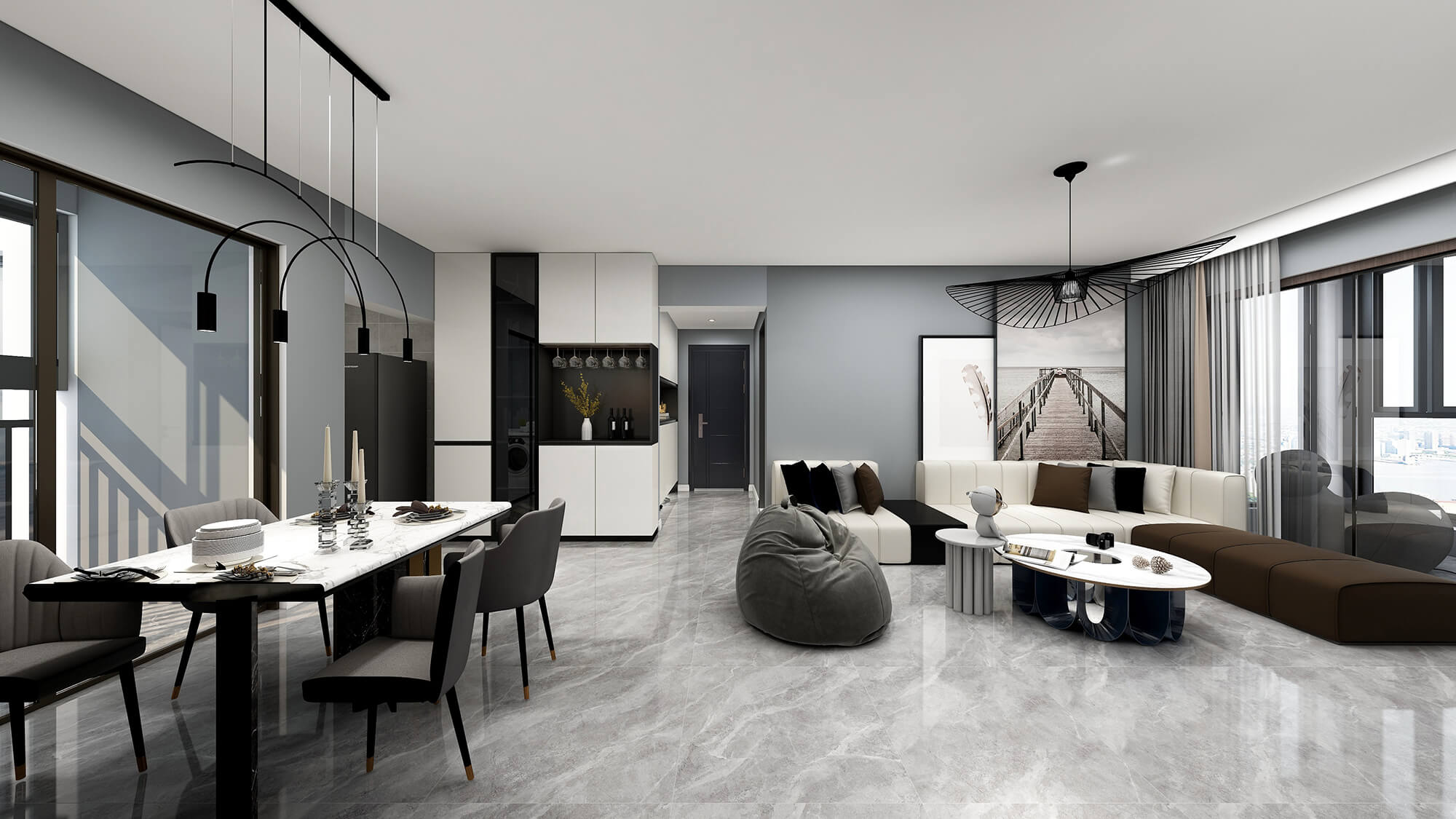 本案為130㎡的現代簡約風格案例。戶型為:4房2廳2衛,總面積130㎡。設計師擯棄一切繁瑣,以簡約而不單調的設計,打破空間局限,以開放式手法,加強空間的聯系,呈現寬敞、自由的居住空間,為業主提供一個簡潔舒適的居家環境。
