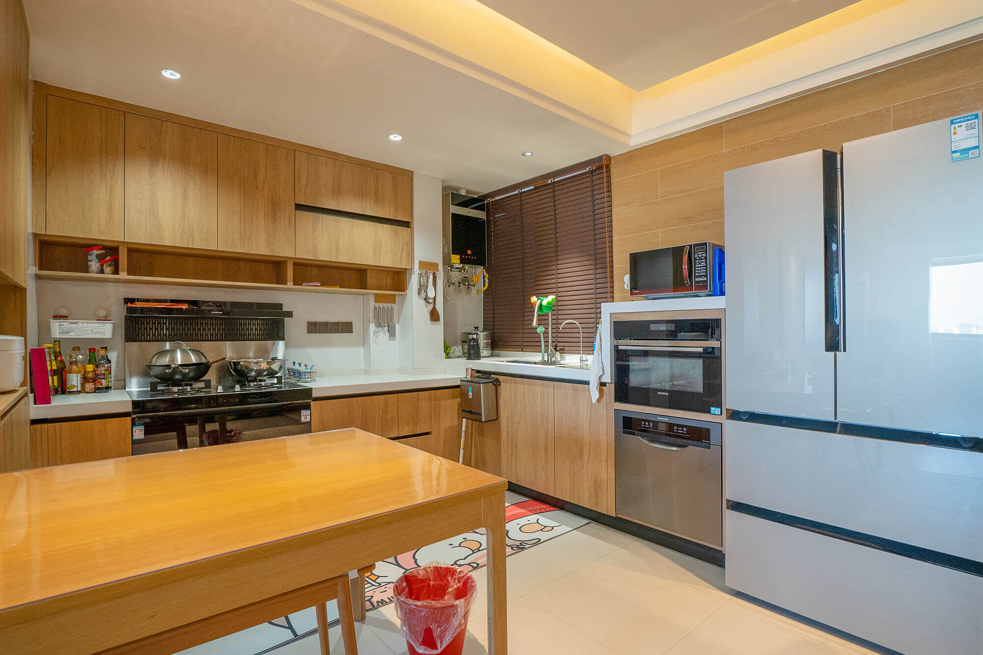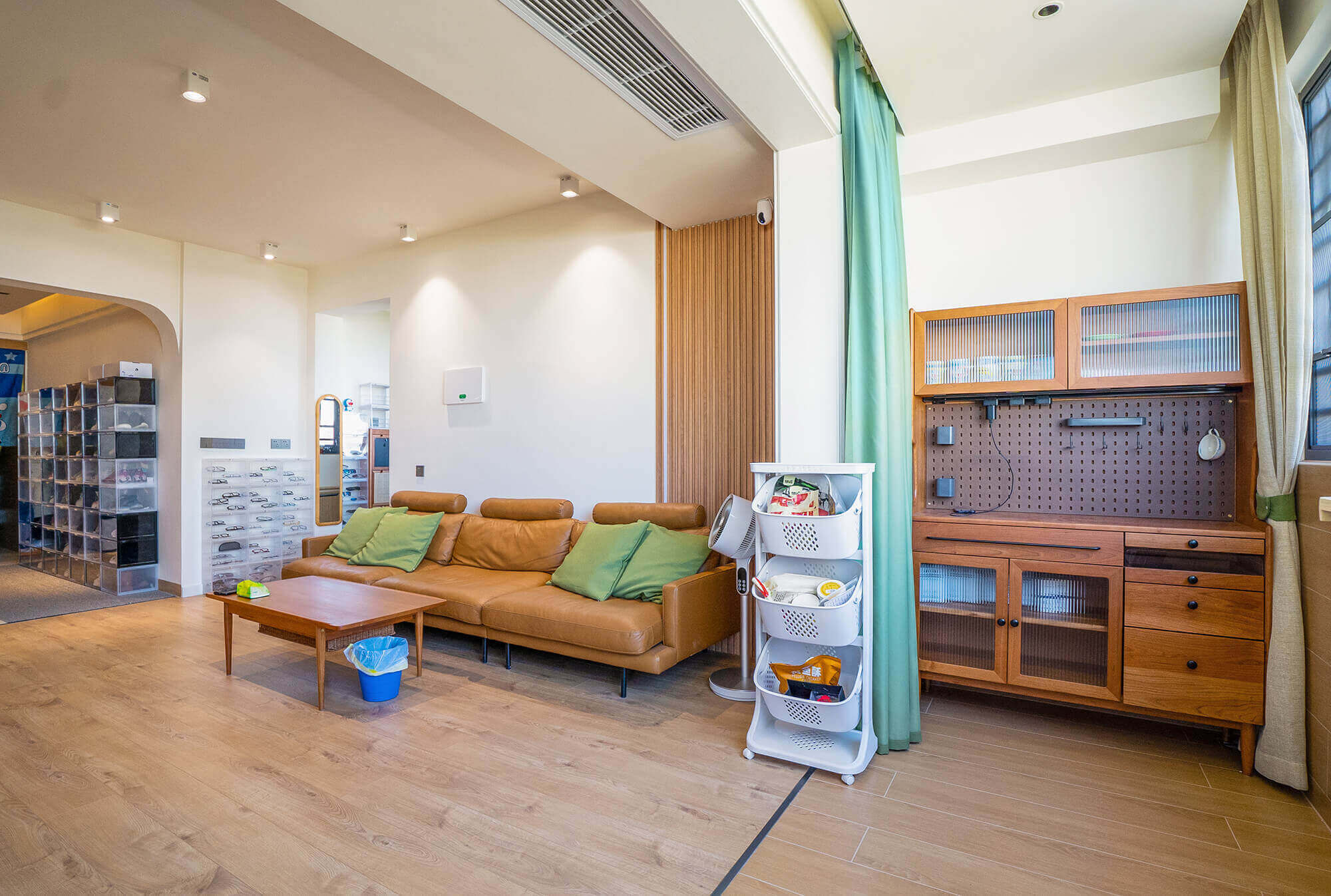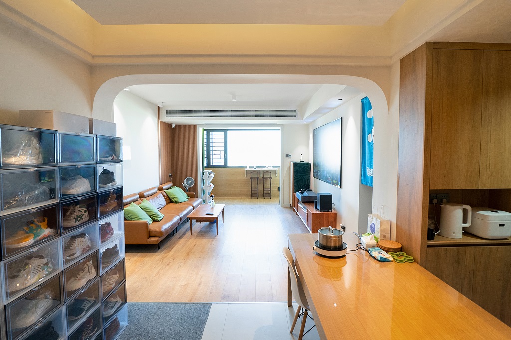 這套房的女業主工作比較忙,所以她想要的家是簡單、方便、舒適的。本次設計也是完全是根據女業主的構想而進行的,全屋的布局和動線都貼合她的生活習慣,整體是日式風格,意木色系為主,布置了很多燈光效果,打造出了一個簡單而溫馨的家。貫通客廳和陽臺的主臥、開放式的餐廚、休閑餐吧等設計,都讓女業主感到身心放松和舒適。