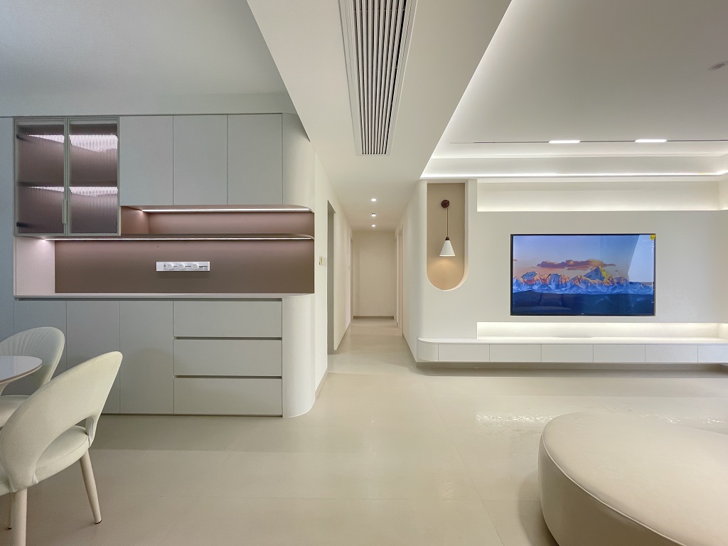 瀏覽量:1099空間整體奶白色調(diào)裝飾,耶為空間帶來了充沛的光線,設(shè)計(jì)師整體結(jié)構(gòu)上不設(shè)明顯的界定,在裝修次材料、色彩搭配上逐步描述空間的構(gòu)成關(guān)系。