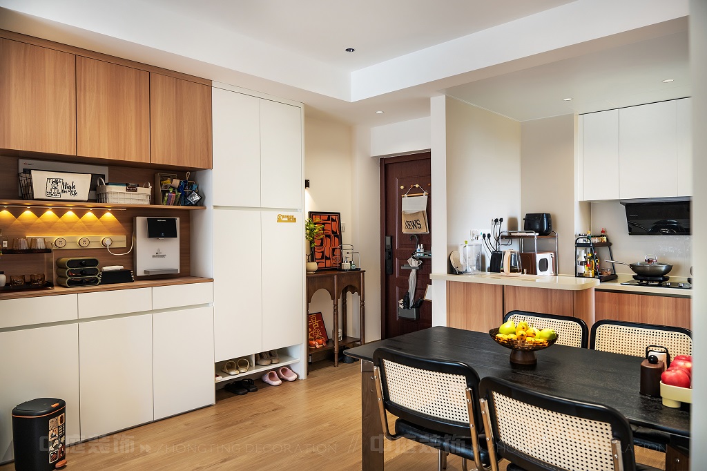 瀏覽量:70每一處細(xì)節(jié),都是他們對(duì)“把日子過(guò)成詩(shī),讓家裝滿(mǎn)故事”的詮釋。以原木的溫潤(rùn)、白調(diào)的清爽為基底,在玄關(guān)處嵌入復(fù)古邊幾,擺上藝術(shù)感的裝飾畫(huà),仿佛時(shí)光在此打了個(gè)溫柔的結(jié);餐廚區(qū)的咖啡角裝滿(mǎn)對(duì)生活的小確幸,與開(kāi)放式廚房的煙火氣交融,是晨起的咖啡香與深夜的飯菜香的浪漫邂逅;客廳里,黑色皮沙發(fā)搭配復(fù)古風(fēng)抱枕,一旁的藝術(shù)綠植蜿蜒生長(zhǎng),就像主人對(duì)生活的熱愛(ài)肆意又熱烈。