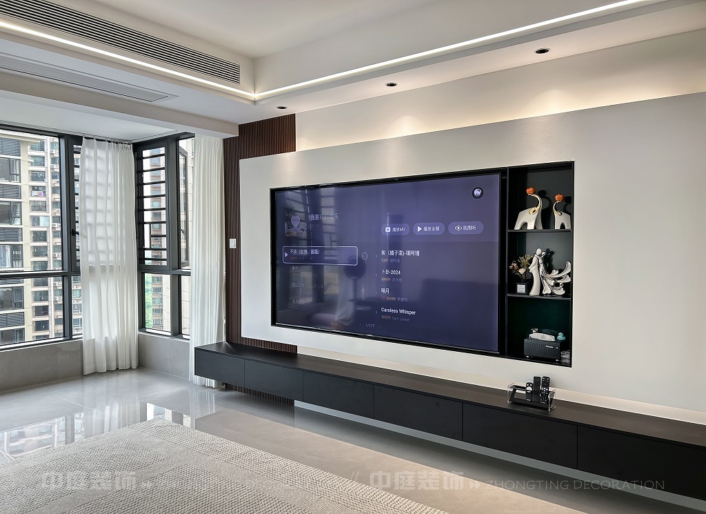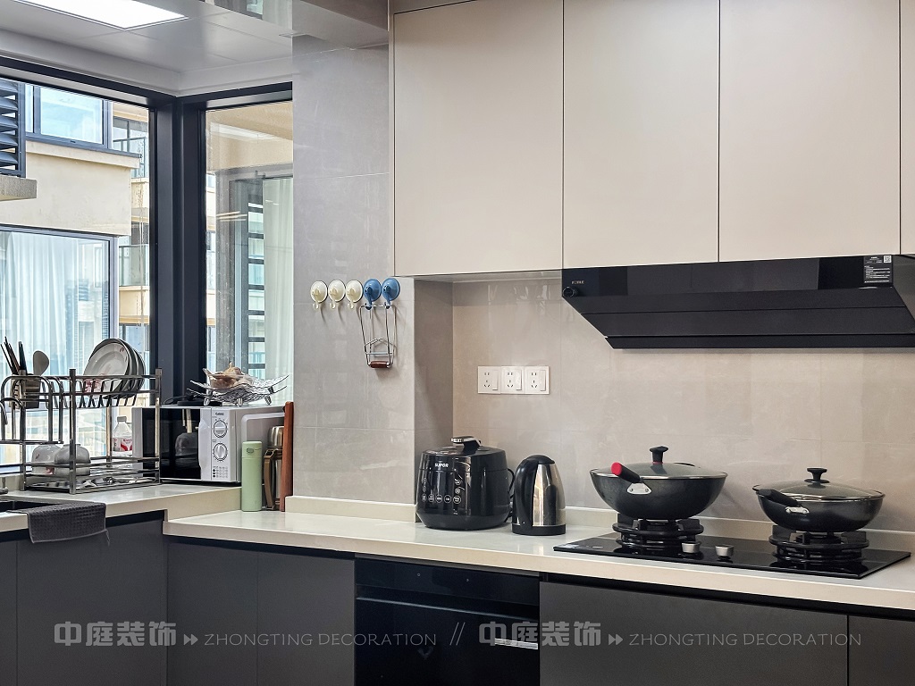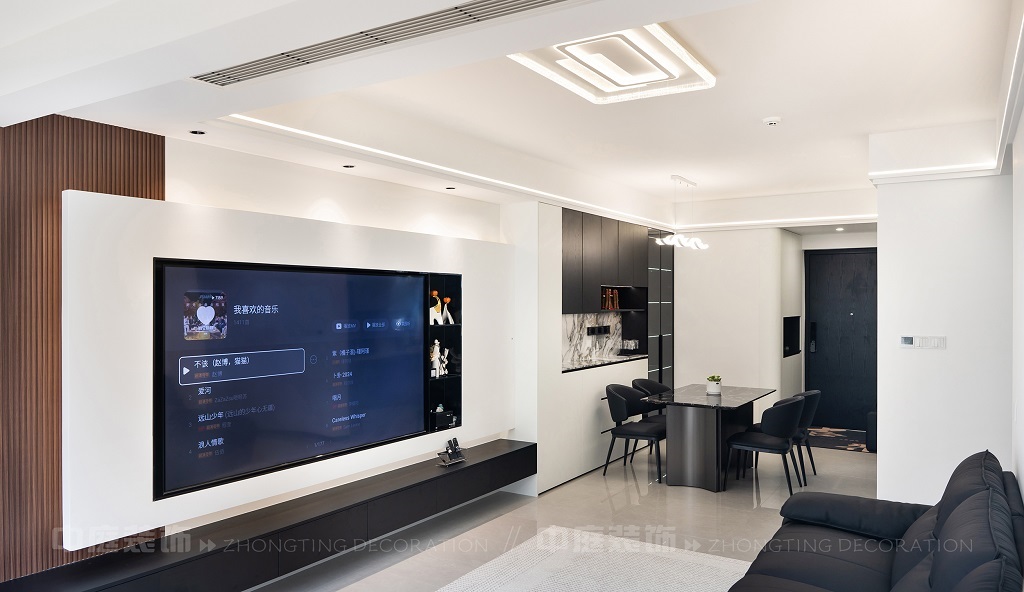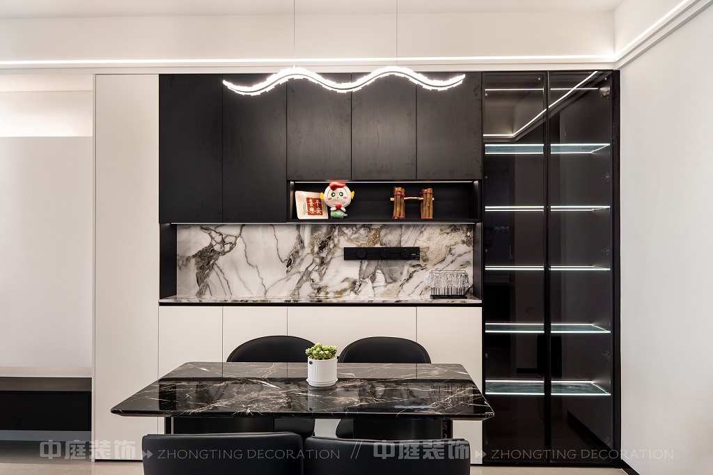 整個家以黑、白、灰為主色調,簡約又高級??蛷d電視墻的設計很有層次,黑白柜體搭配大理石元素,質感拉滿;餐廳的黑色大理石餐桌盡顯格調。玄關的黑色木門和“喜樂平安”的細節,又添了幾分溫馨。廚房的灰色系櫥柜實用又美觀,衛生間把洗衣區和洗漱區結合,大理石臺面太顯質感了!整體風格利落大氣,每一處都透著精致,是現代年輕人都愛的極簡高級感沒錯了~