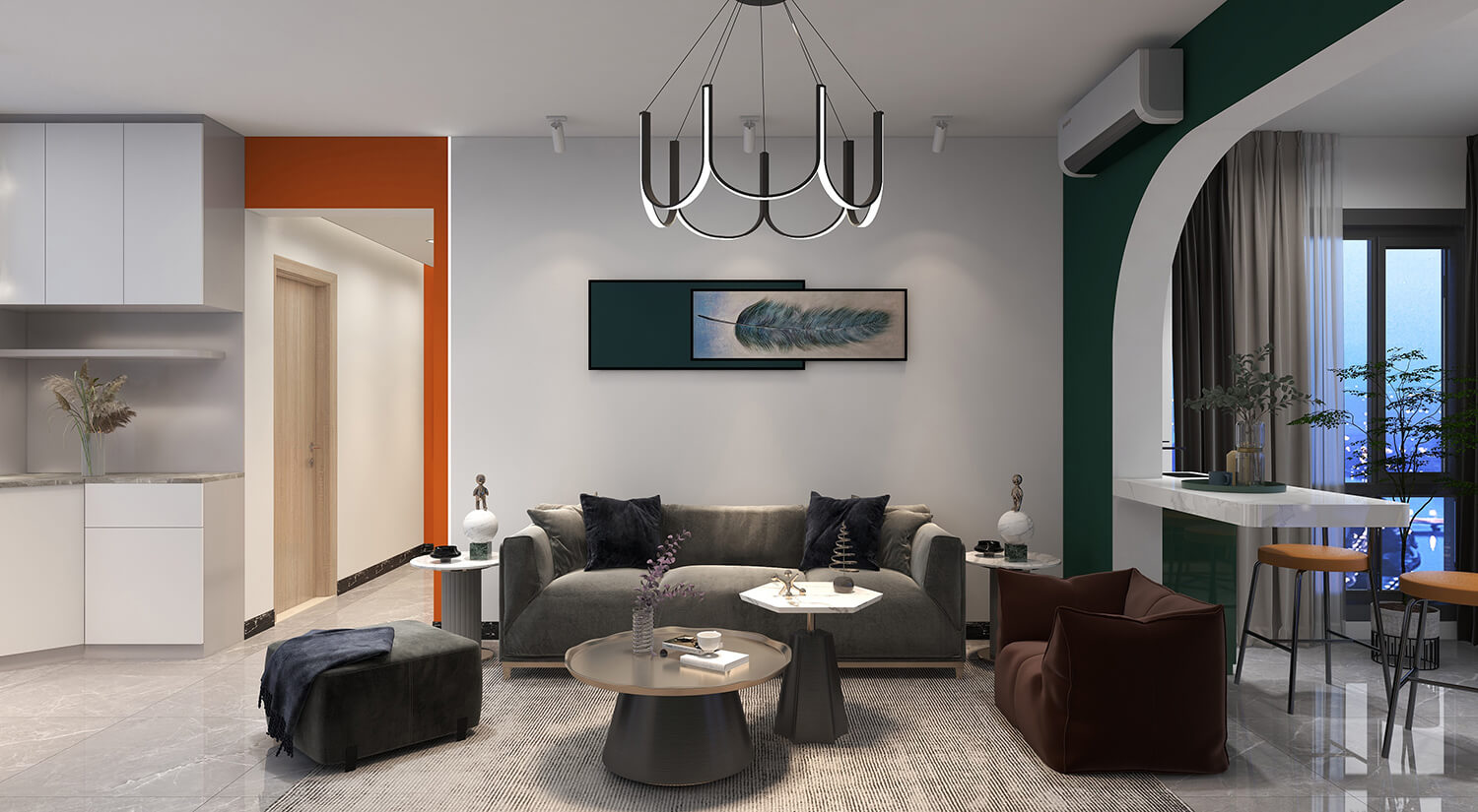 本案例戶型為:3房1廳1衛,總面積125㎡。這是一套輕奢風格的房子。設計師采用開放式布局,將客廳、餐廳融為一體。這樣不僅增加了家庭成員的互動和交流,也可以讓房間看起來更加寬敞。輕奢金屬飾品與布藝沙發的結合,使得畫面具有時尚感又不乏溫馨。