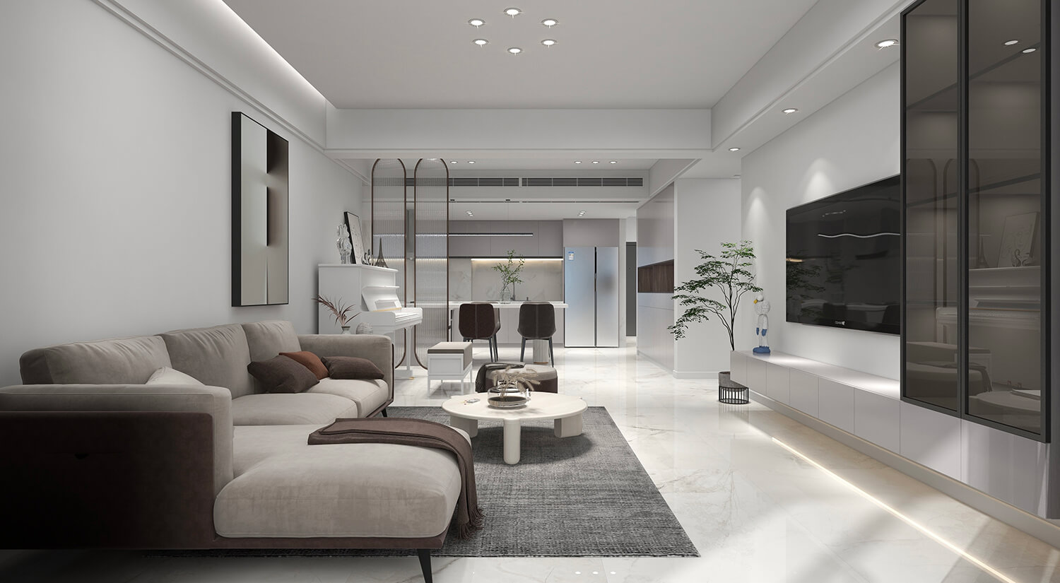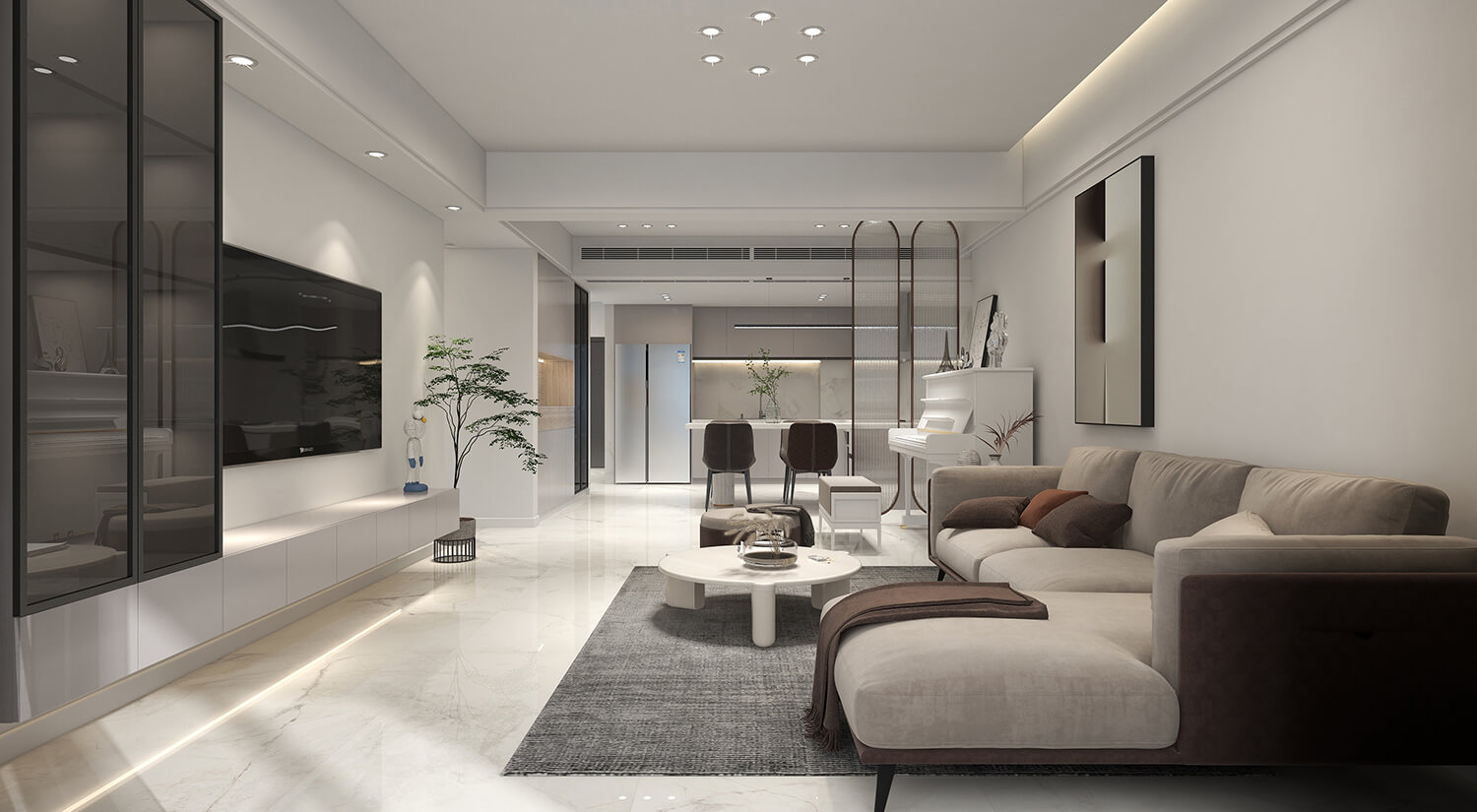 本案例戶型為:3房1廳2衛,總面積149㎡。現代簡約風格以極簡的線條、簡潔的色彩和純粹的形式為主要特征的室內設計風格。在這個案例的設計中,避免過多的裝飾和復雜的紋理,力求簡單、清爽和現代感。