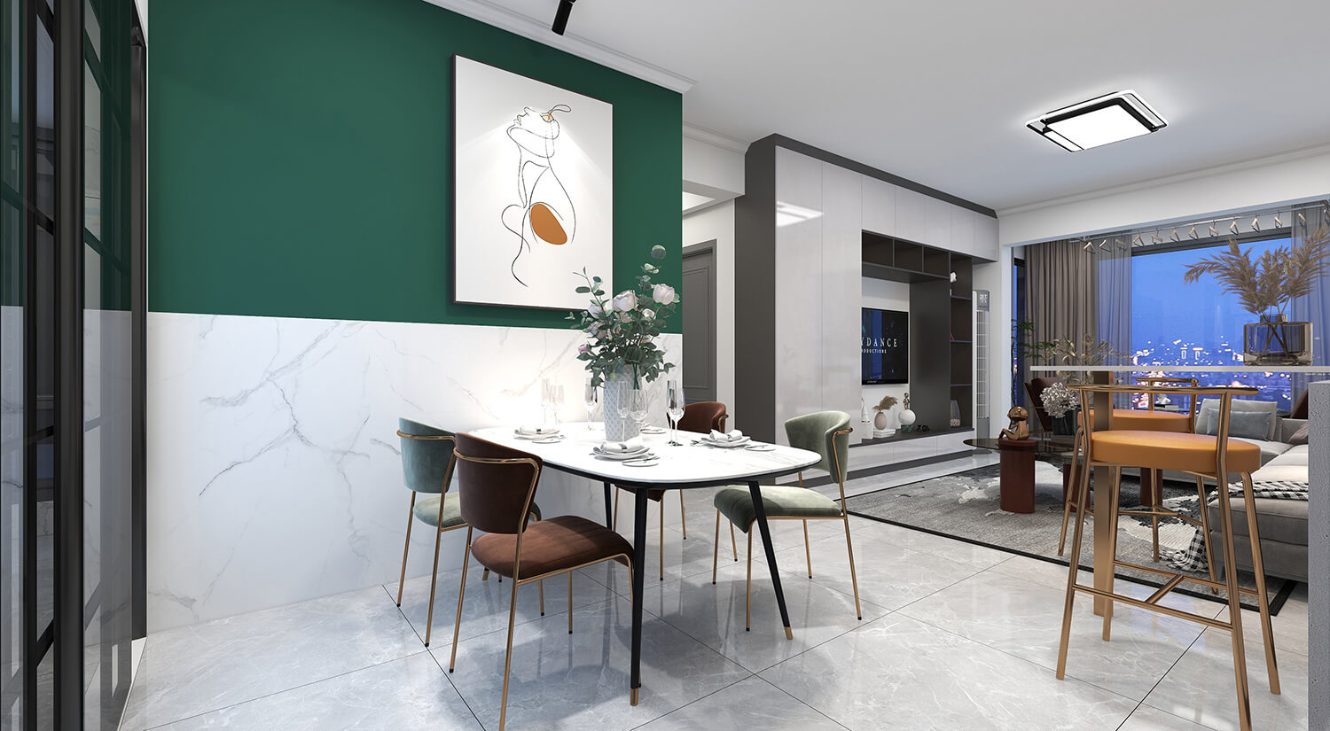 瀏覽量:320本案例戶型為:4房1廳2衛(wèi),總面積130㎡。墻壁、地板和天花板的顏色選擇明亮的白色,并搭配少量的深綠色作為點綴。在各種金屬質(zhì)感家具元素的襯托下,整體現(xiàn)代感十足。