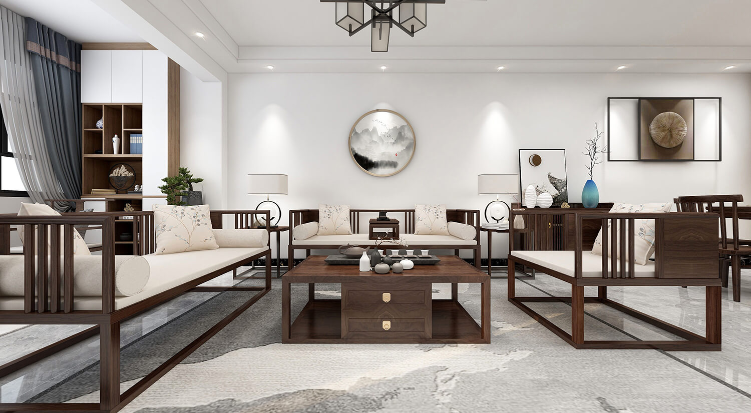 本案例戶型為:3房1廳2衛,總面積109㎡。是一套新中式風格案例。新中式風格結合了傳統中式元素與現代設計理念的風格。它強調對自然環境的尊重和對傳統文化的傳承,同時又融入了現代元素,形成了一種具有時代感和藝術感的風格。