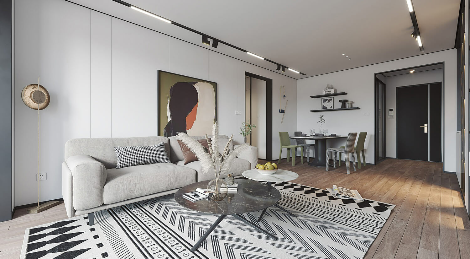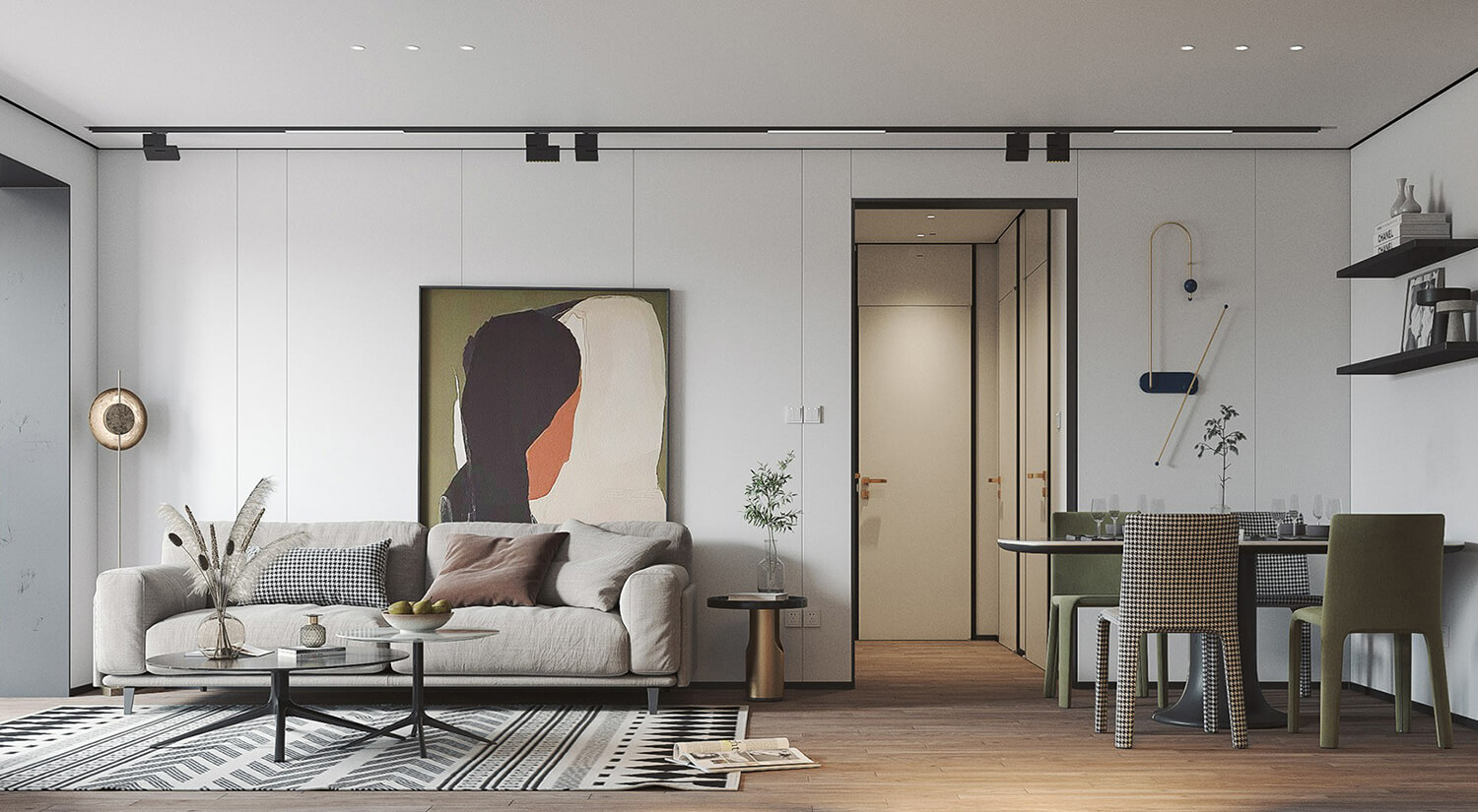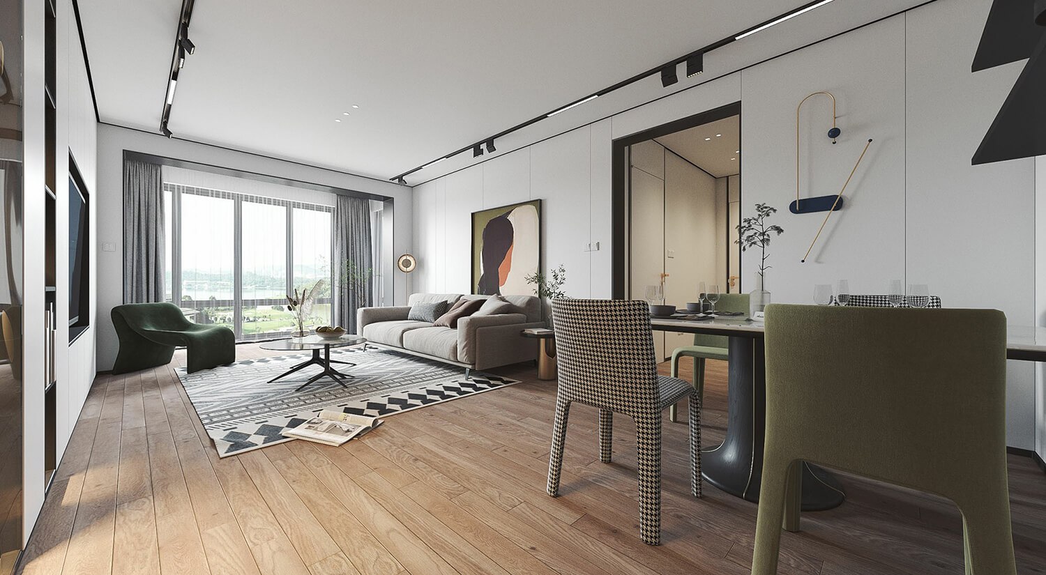 這是一對年輕夫婦的98㎡住宅,以簡潔手法打造自然、質樸典雅的空間,既藝術又有格調并帶有明顯的設計氣質。