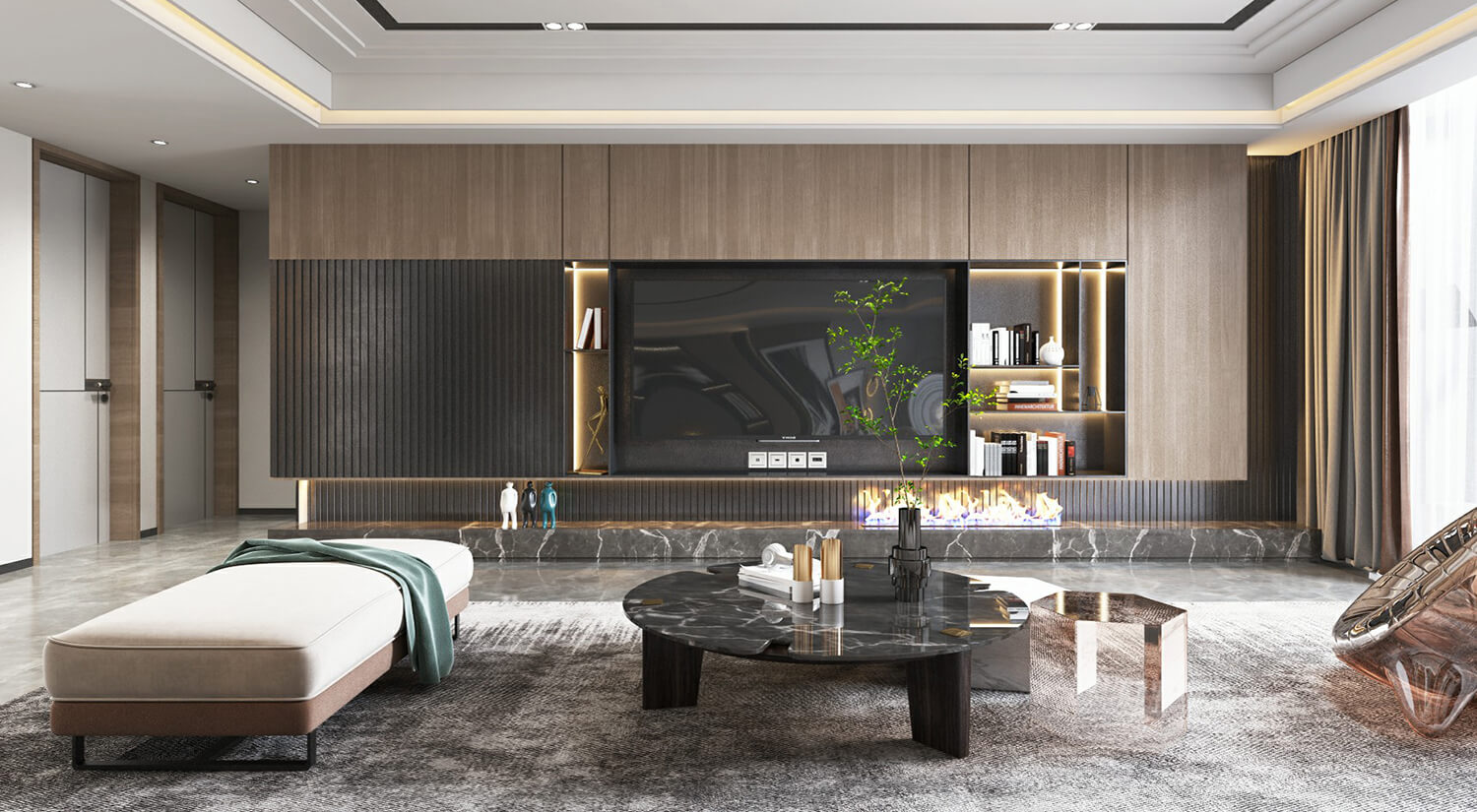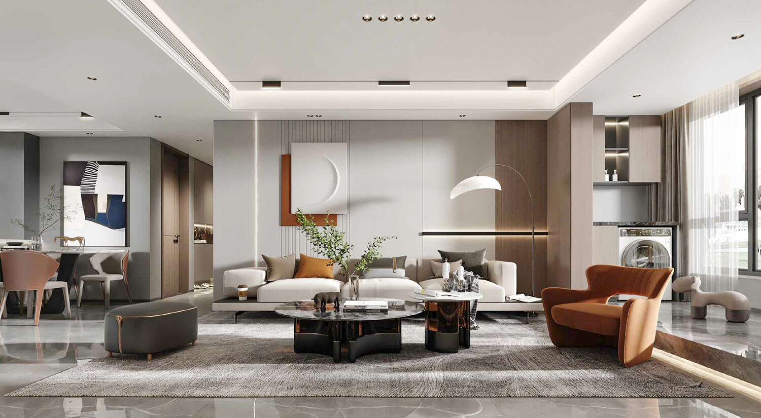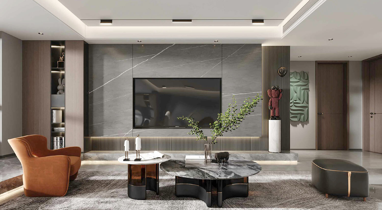現代輕奢風格的特點之一是注重材質的選擇和質感的呈現。在空間設計中,通常使用大面積的高檔材質,如天然大理石、優質實木、高級石材等,這些材質可以為空間營造出一種高貴、奢華的感覺。