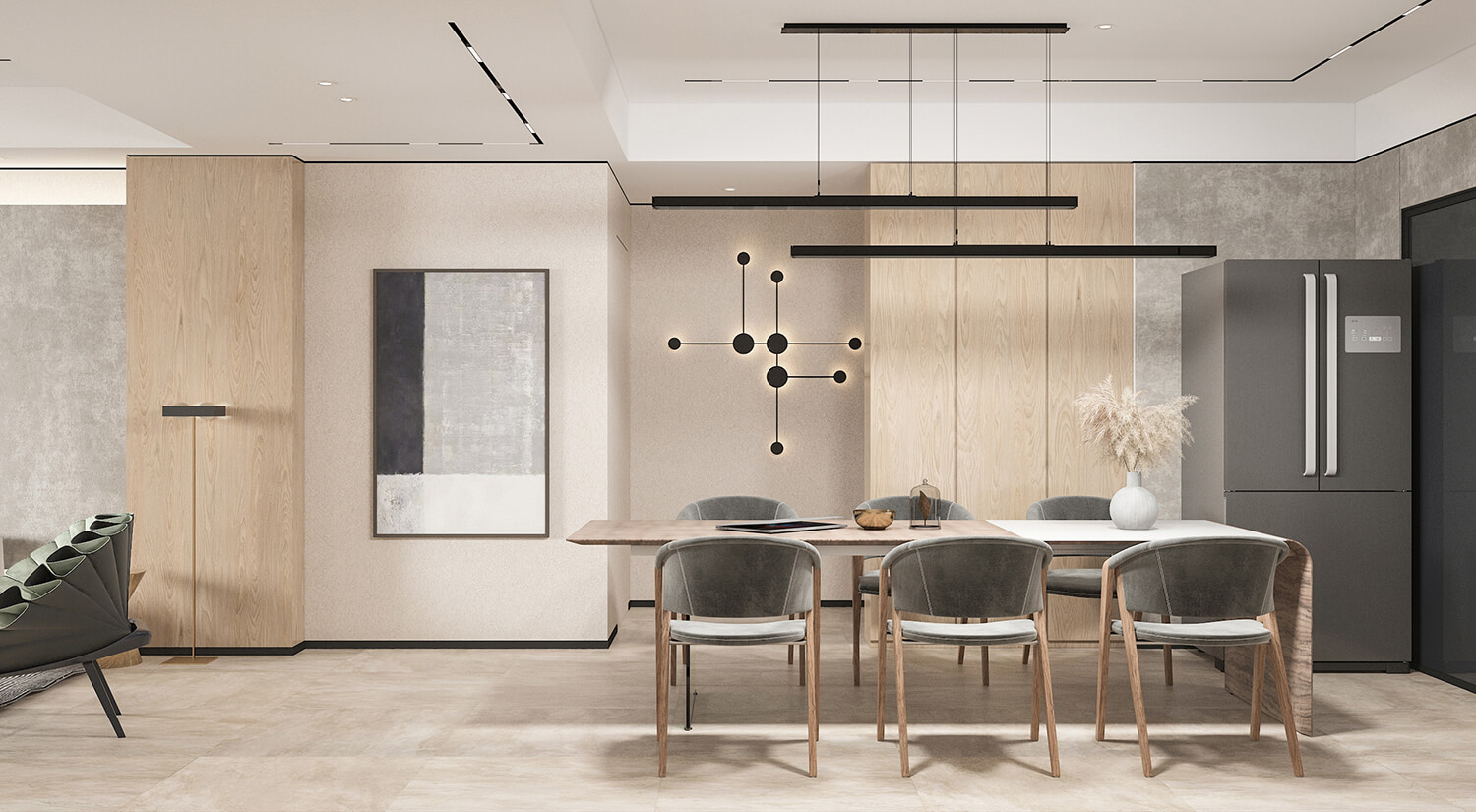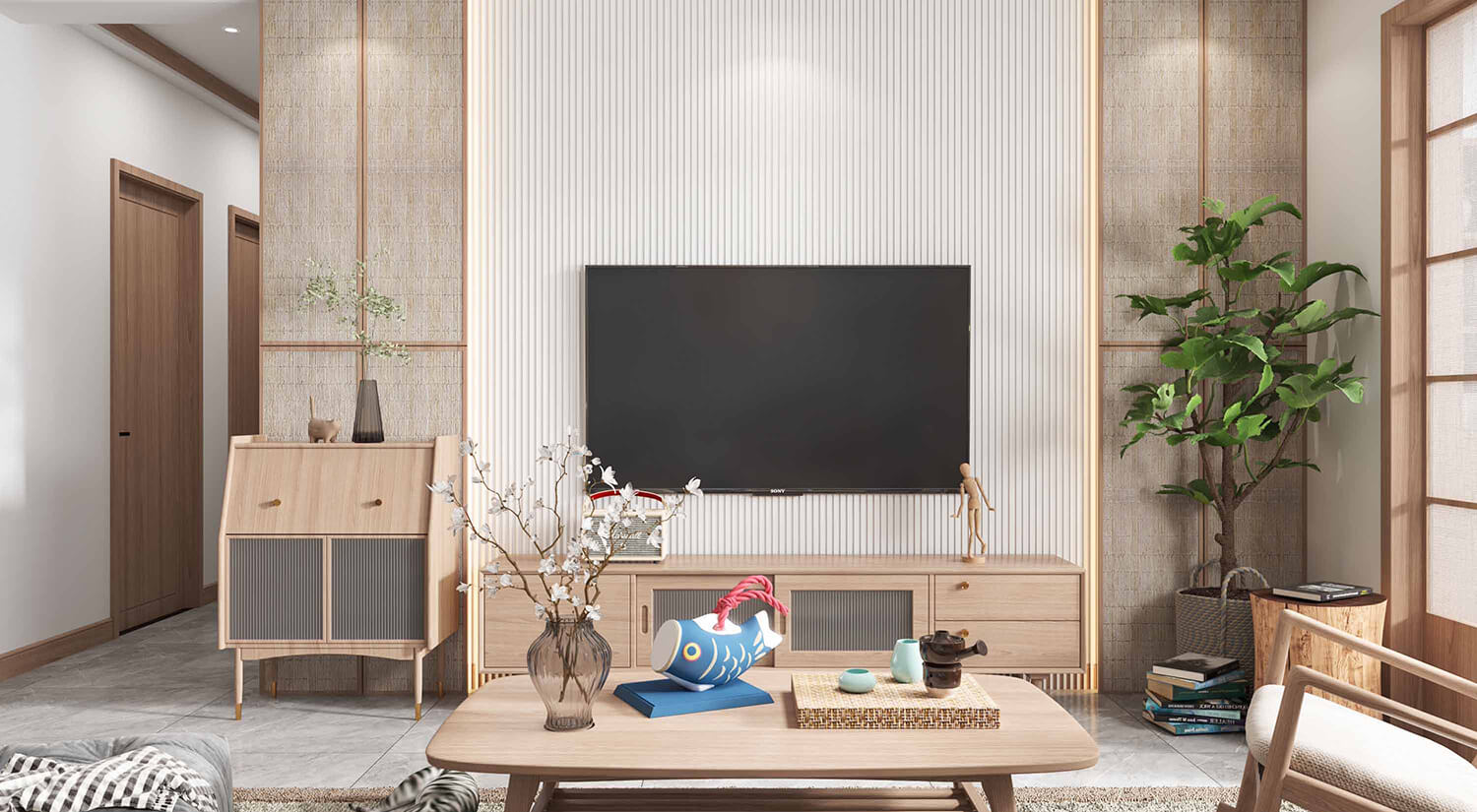 客廳通常被視為日式室內設計的重要區域。通常采用開放式布局,使客廳與餐廳、廚房和走廊相連。使空間富有靈活性。