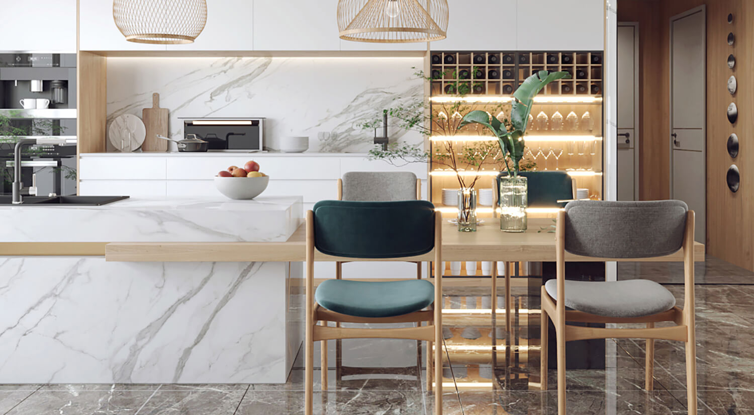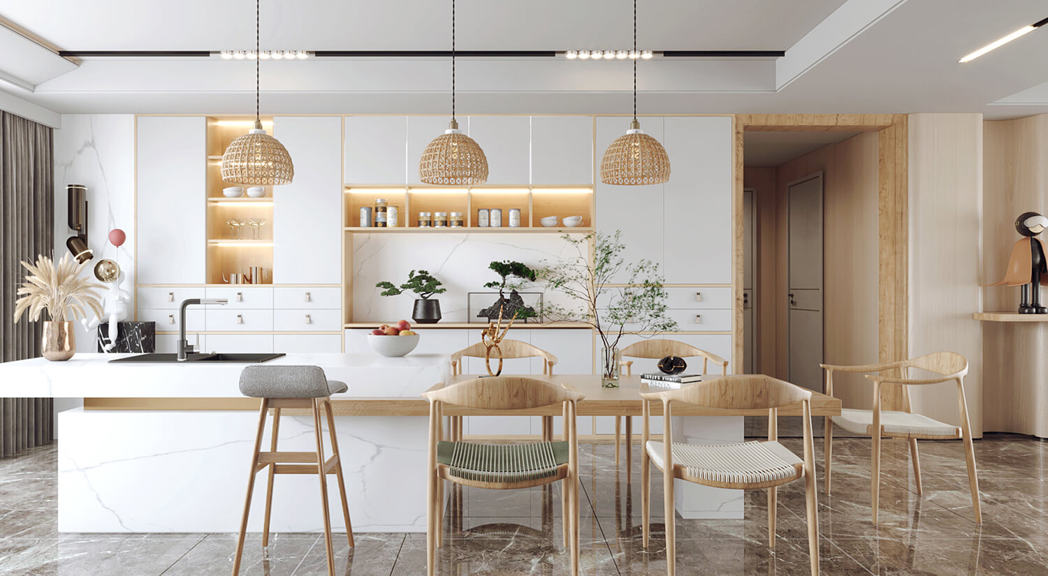 客餐廳使用了大量的木質材料做家具,房間呈現自然、溫暖和舒適的感覺。